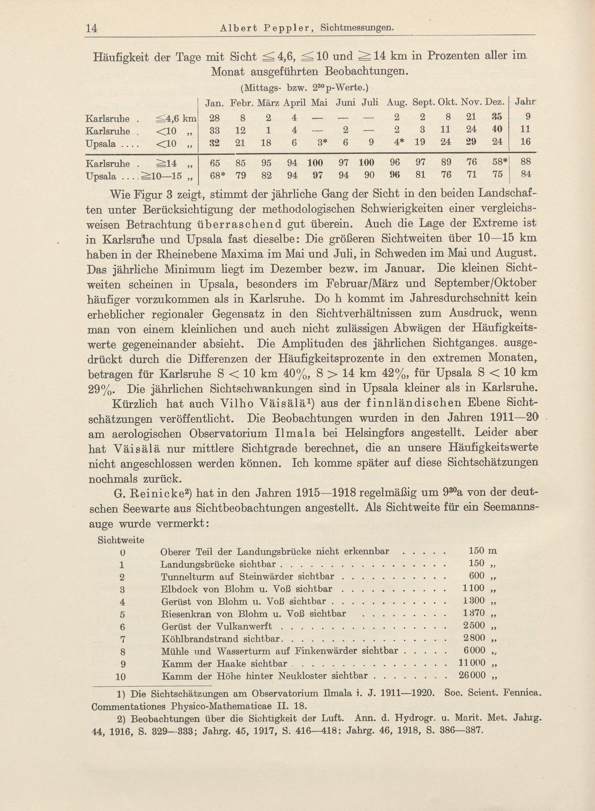 I. Häufigkeit der einzelnen Sichtweiten