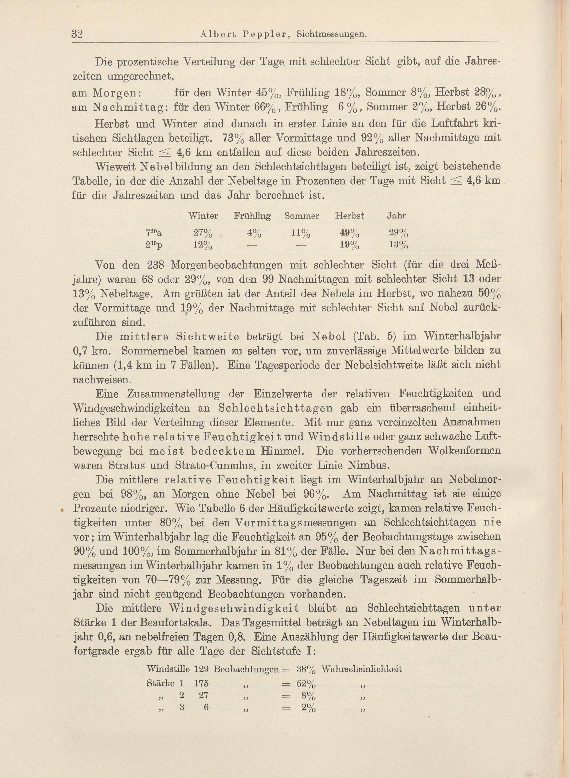 I. Häufigkeit der einzelnen Sichtweiten