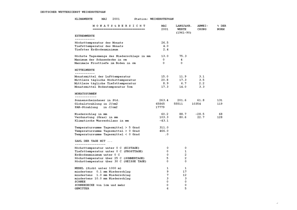 Klimawerte Weihenstephan