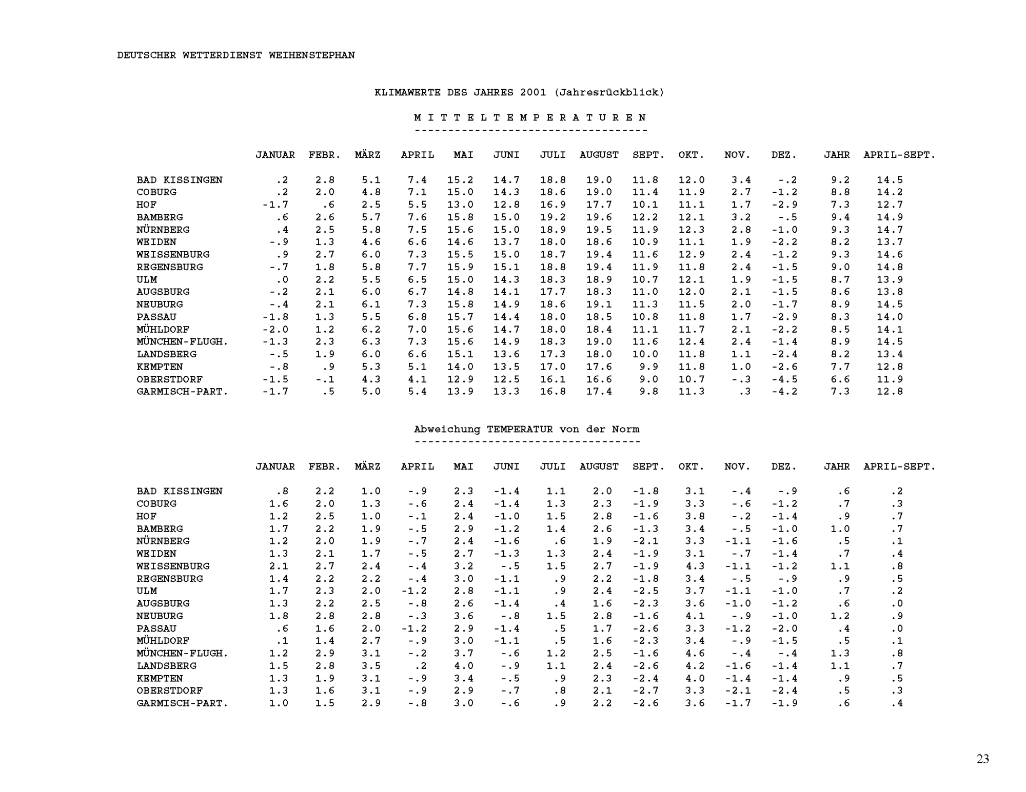 Klimawerte des Jahres 2001 (Jahresrückblick)