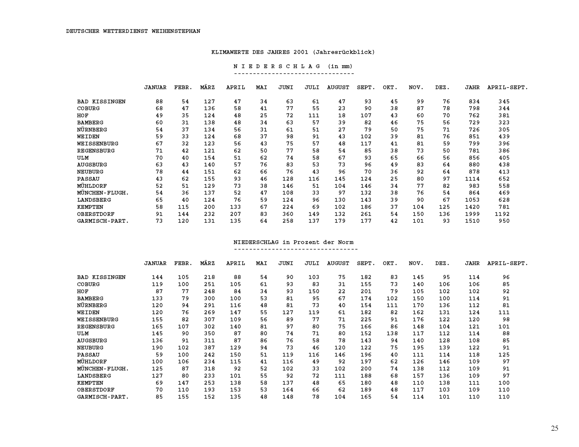 Klimawerte des Jahres 2001 (Jahresrückblick)