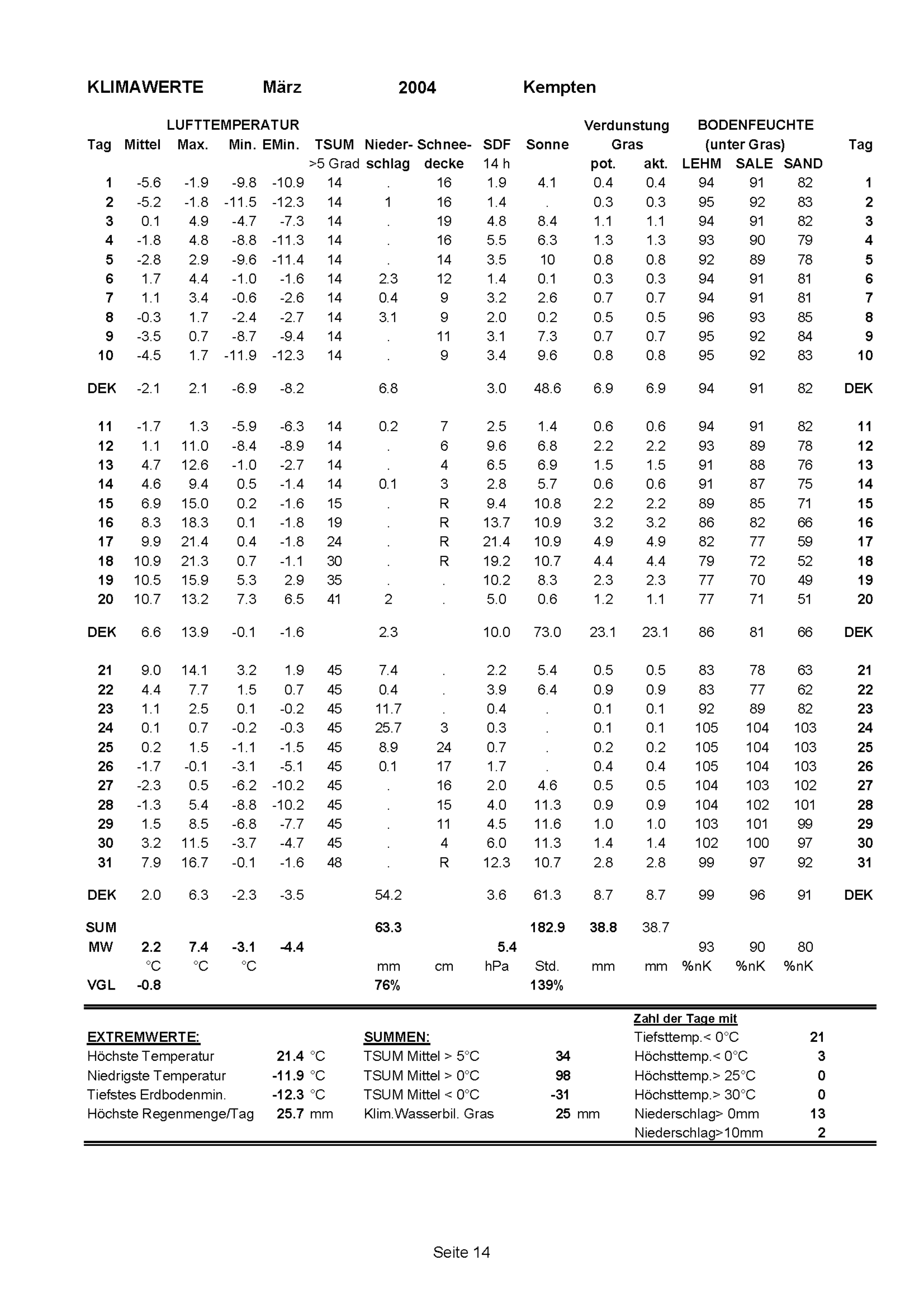 Klimawerte Weihenstephan