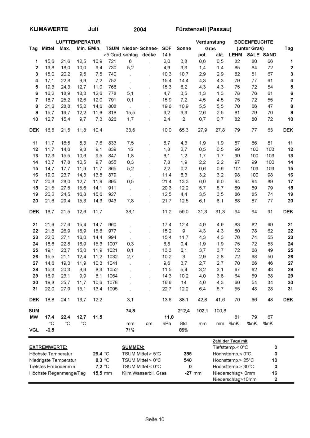 Witterungsrückblick des Monat Juli