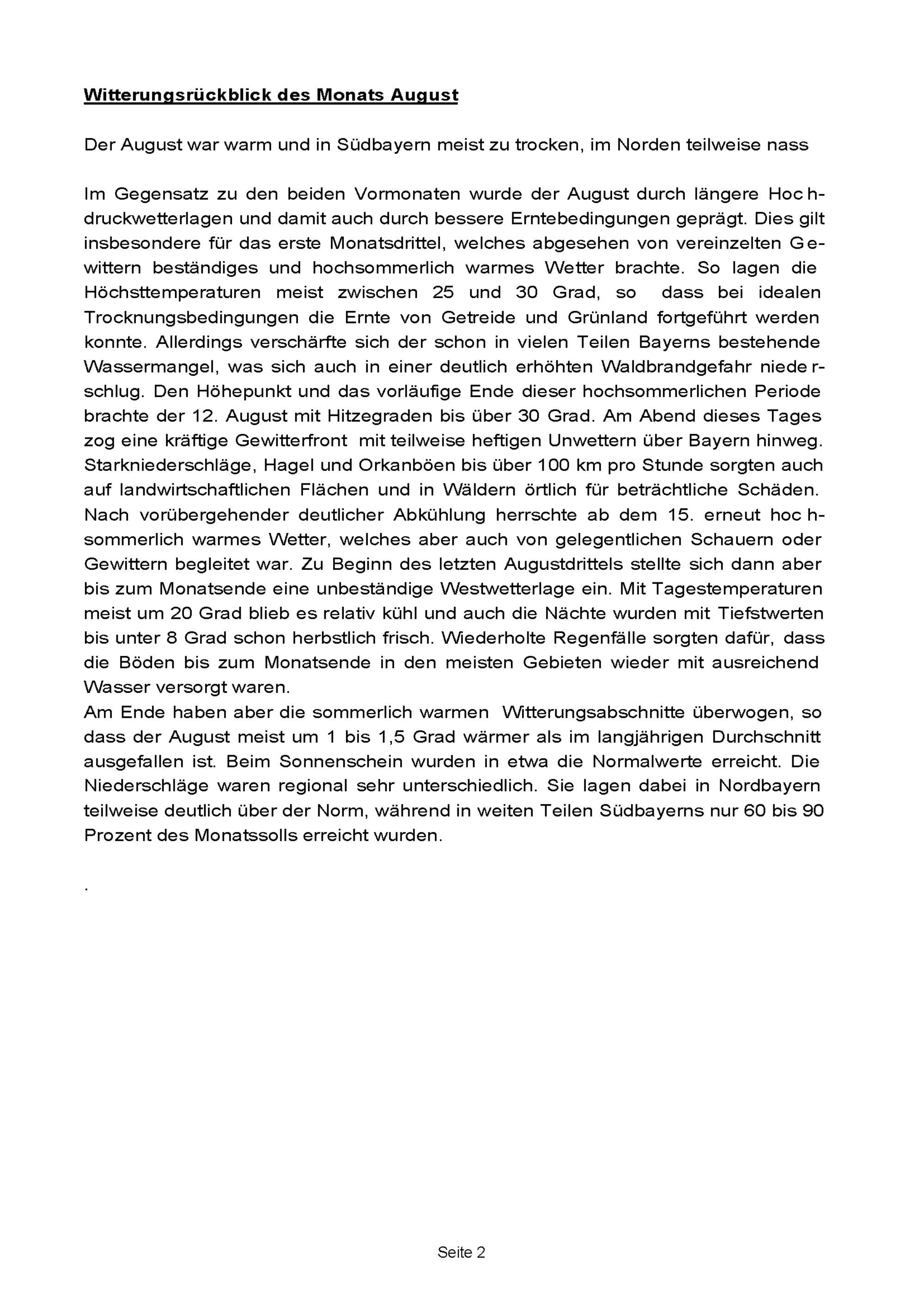 Witterungsrückblick des Monats August
