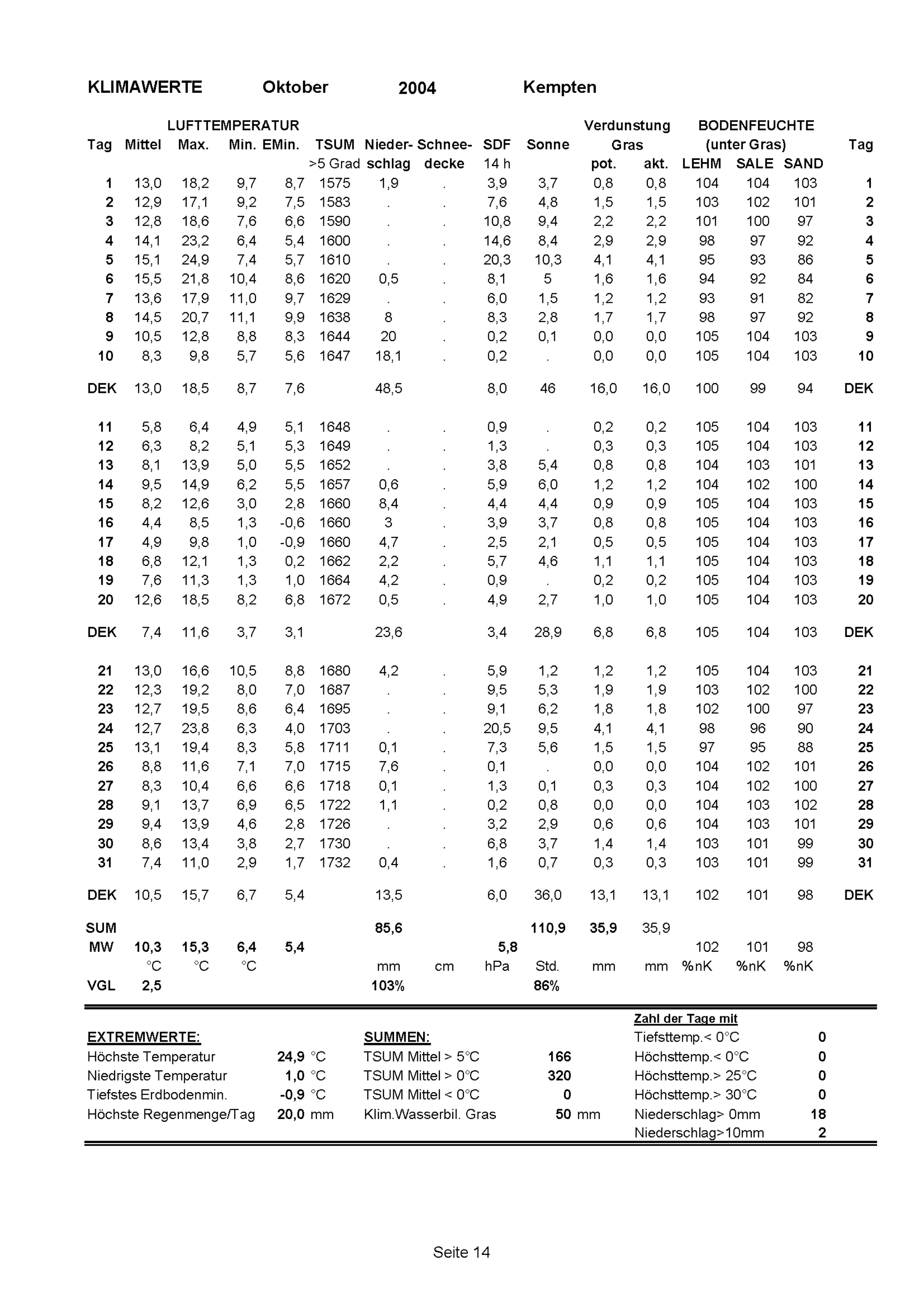 Klimawerte Weihenstephan