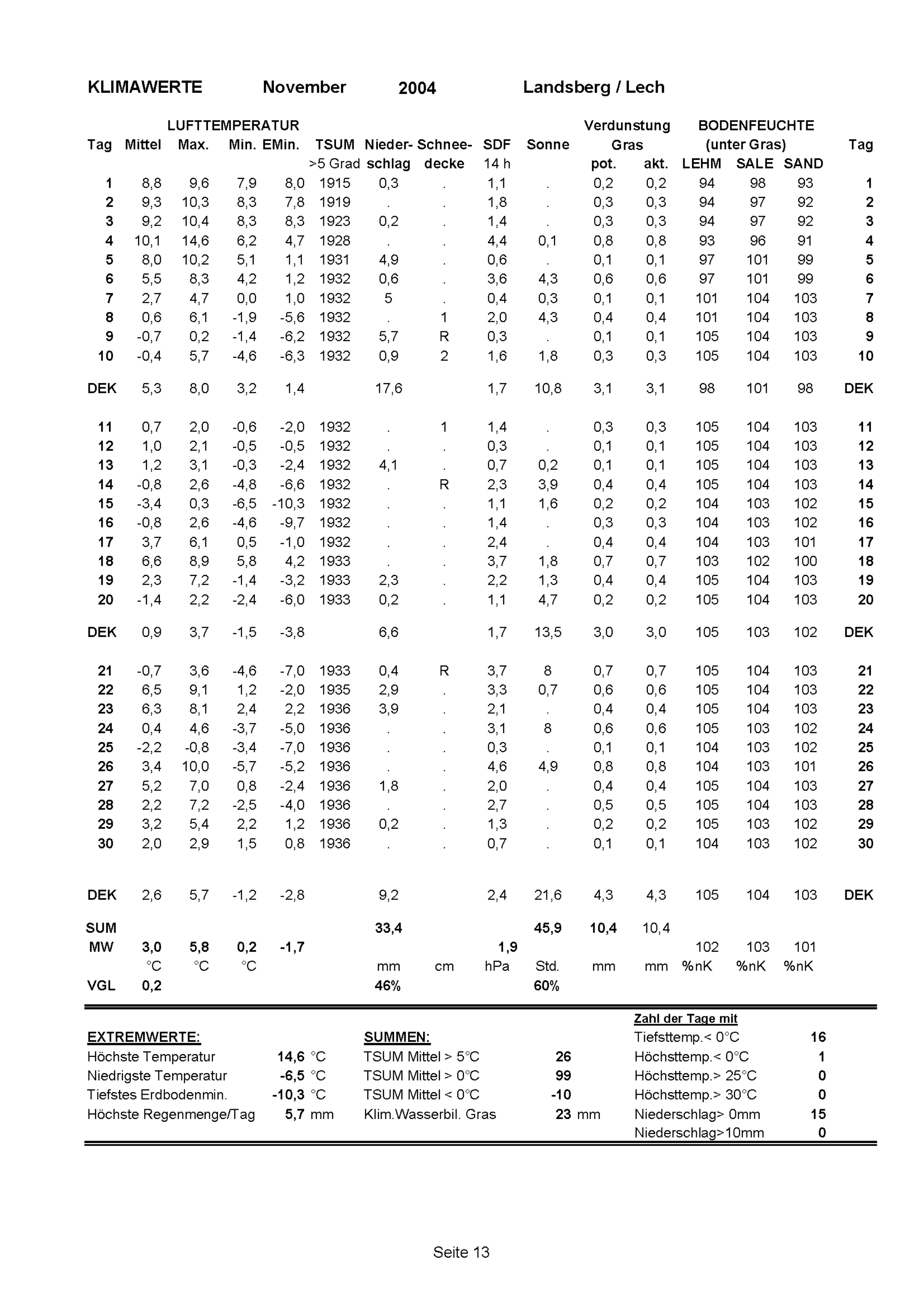 Klimawerte Weihenstephan