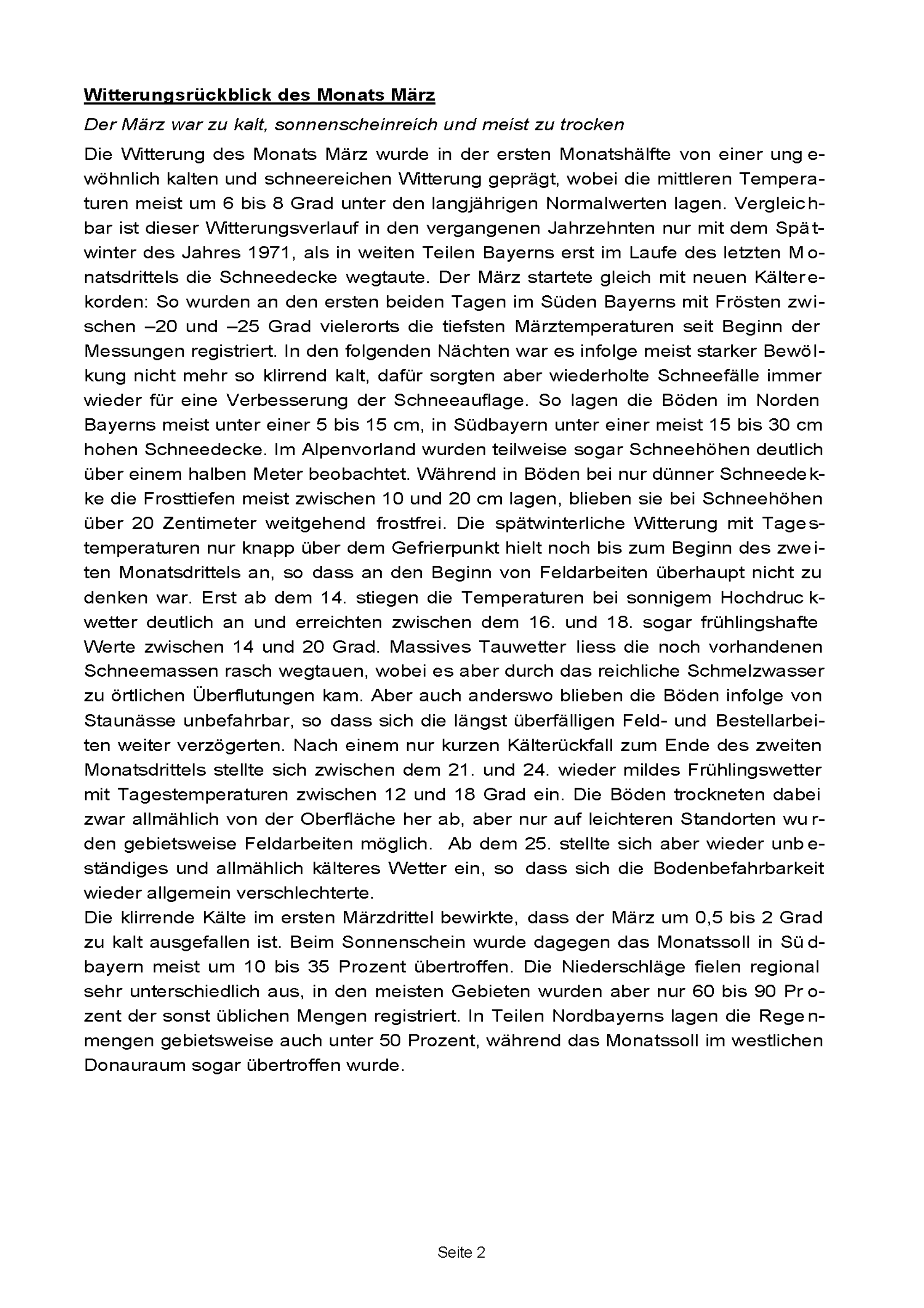 Agrarmeteorologischer Monatsbericht Südbayern