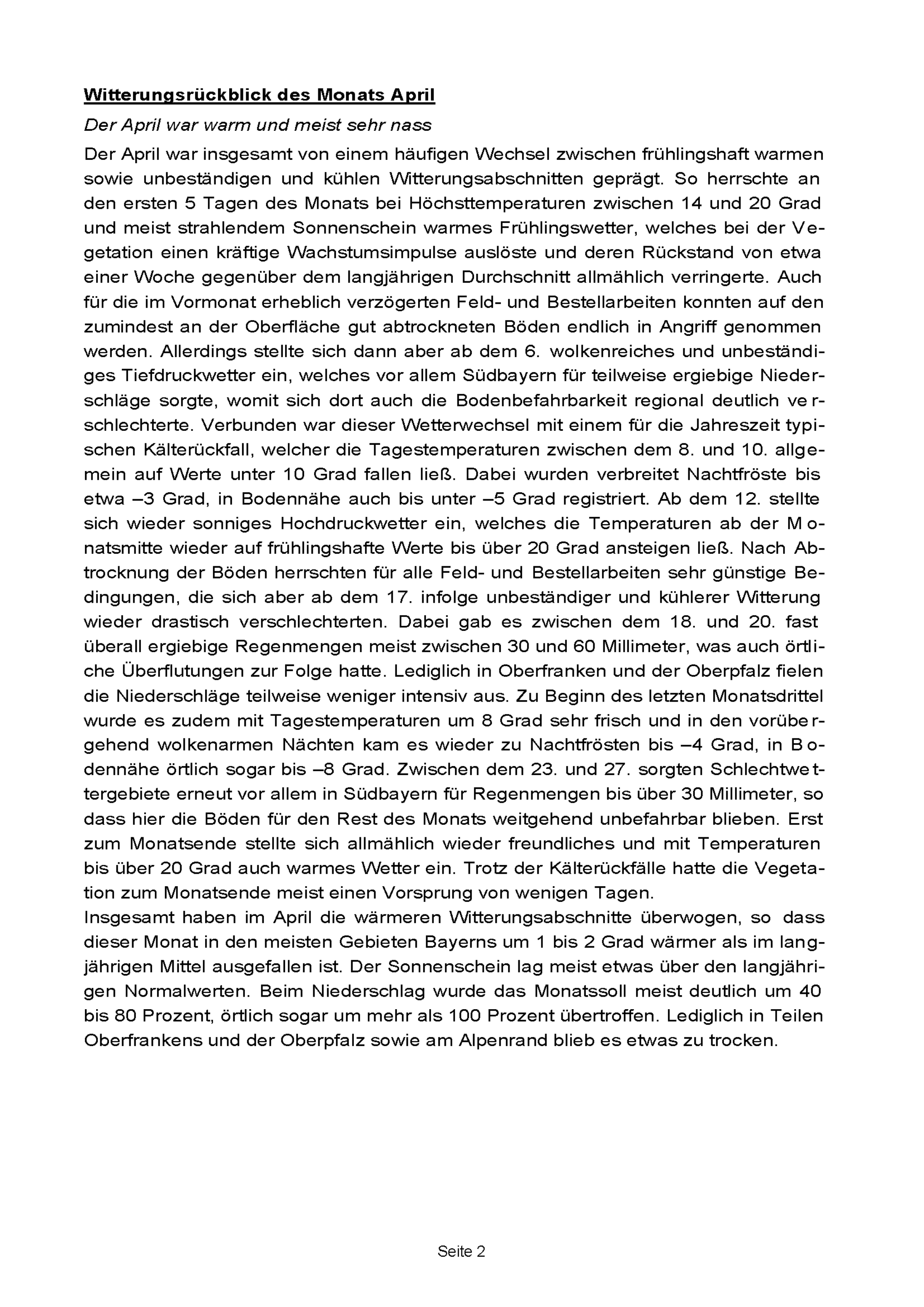 Agrarmeteorologischer Monatsbericht Südbayern
