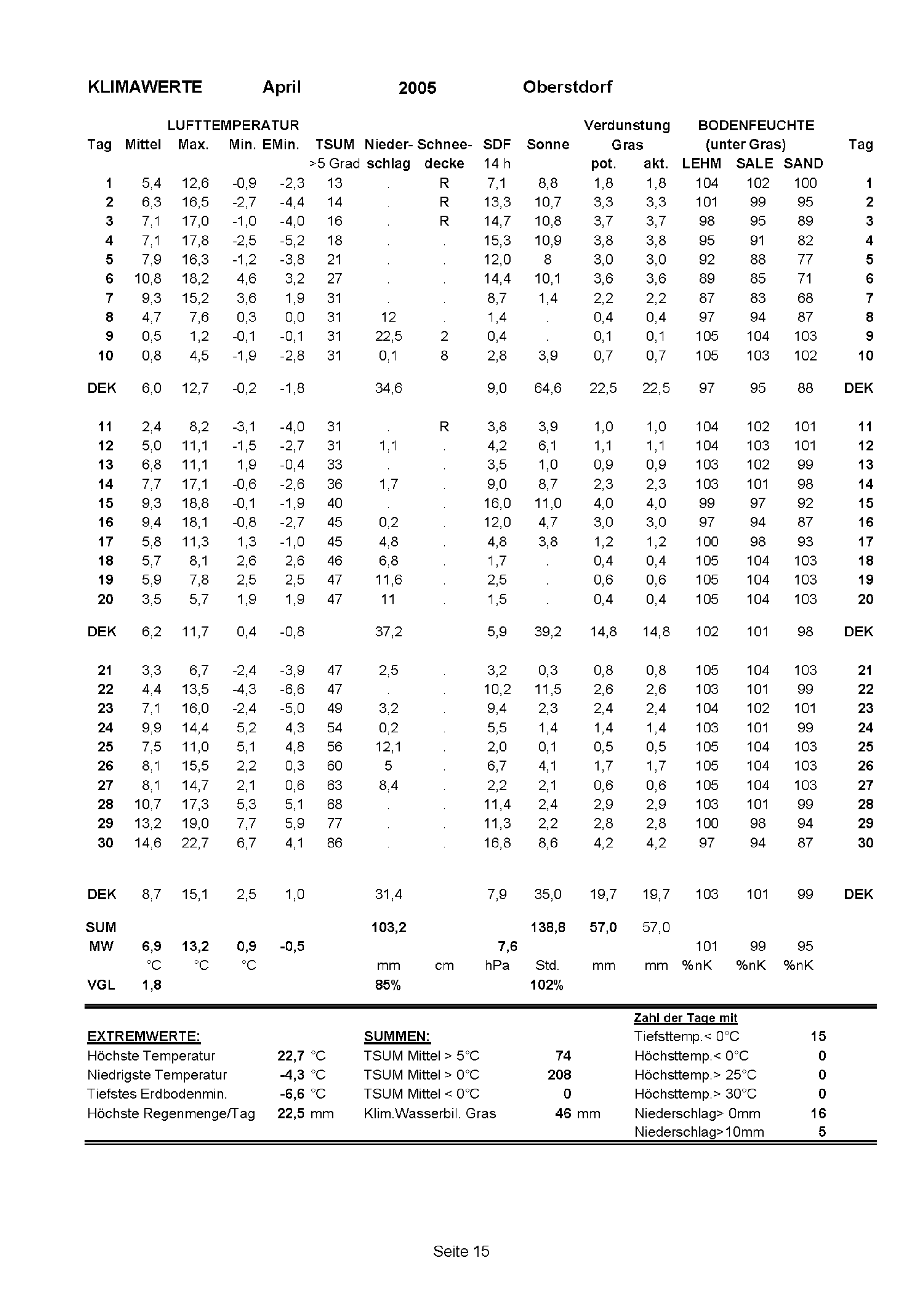 Witterungsrückblick des Monats April