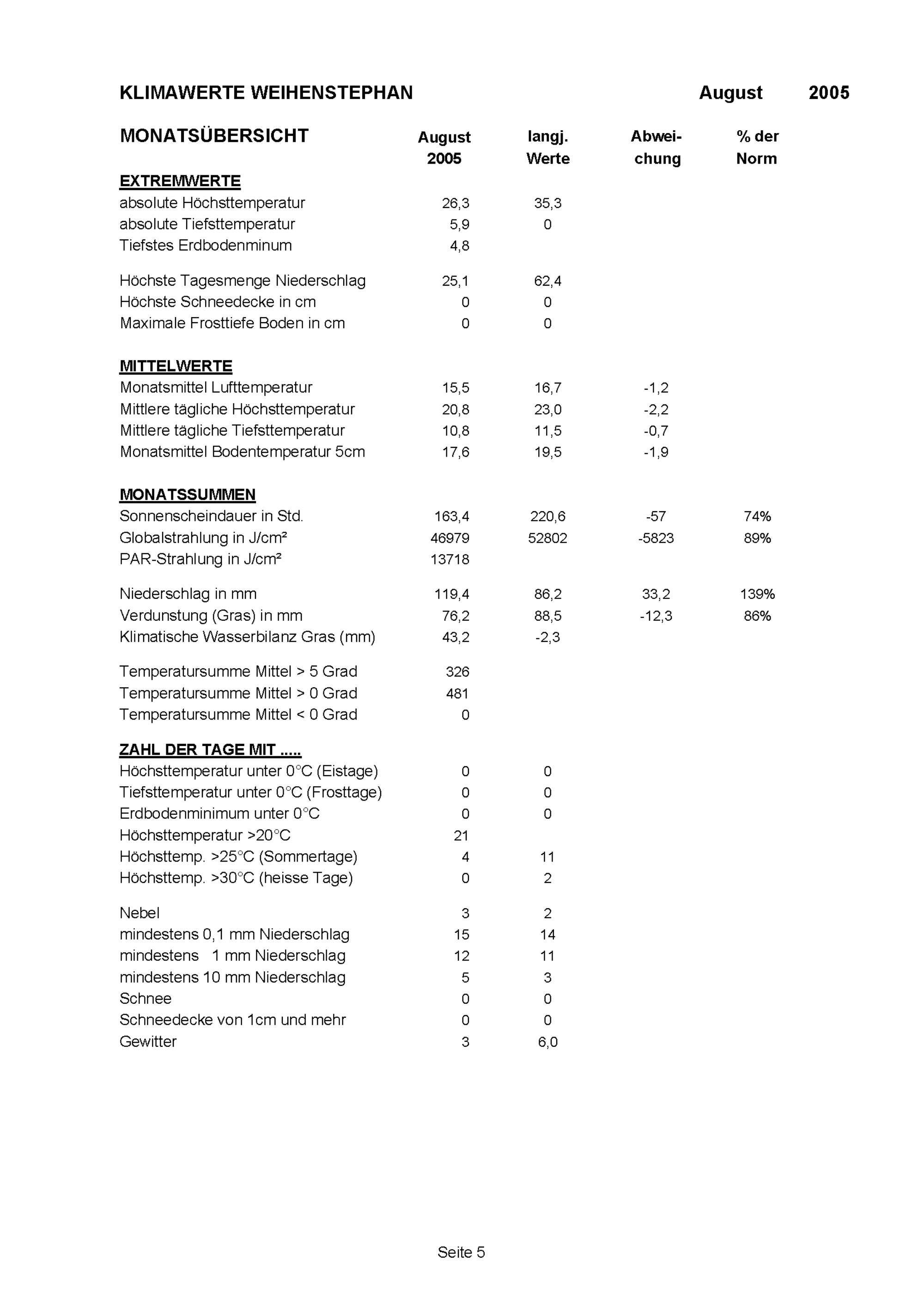 Klimawerte Weihenstephan