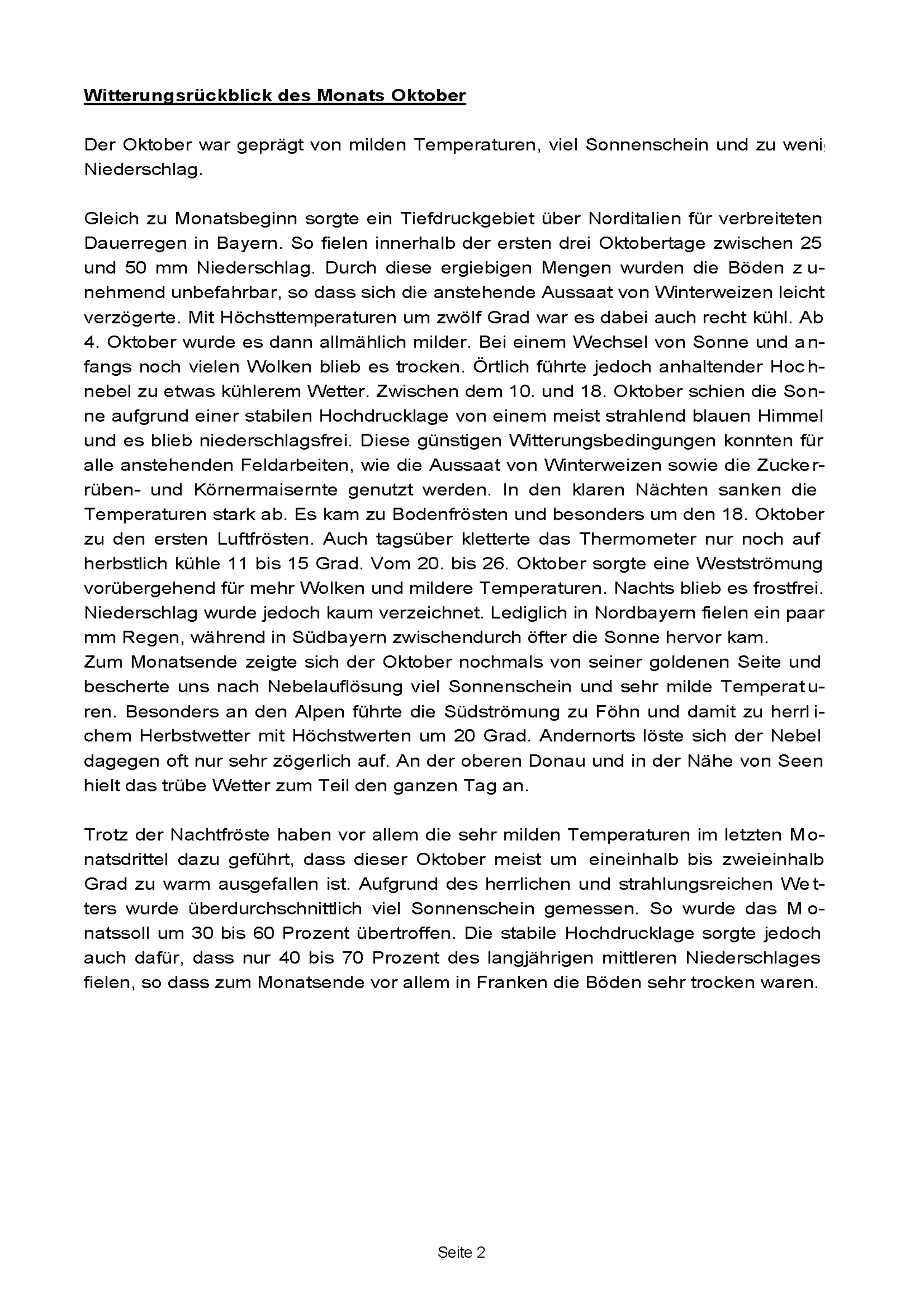 Agrarmeteorologischer Monatsbericht Südbayern