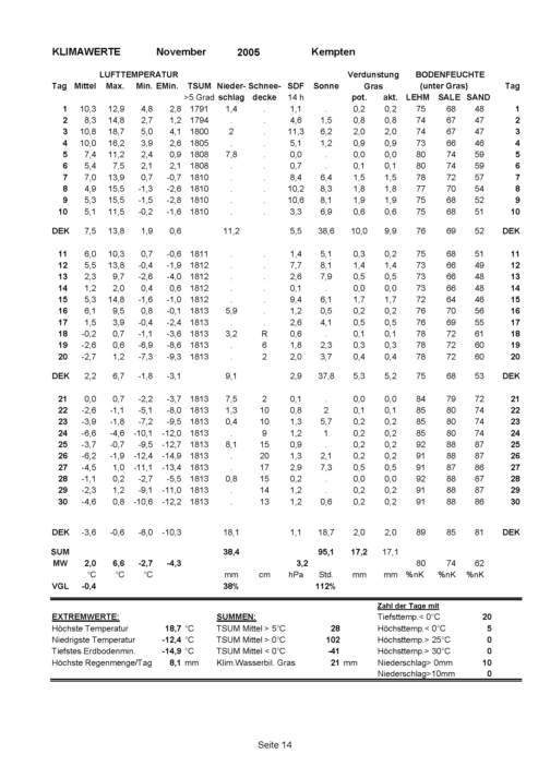 Witterungsrückblick für den Monat November