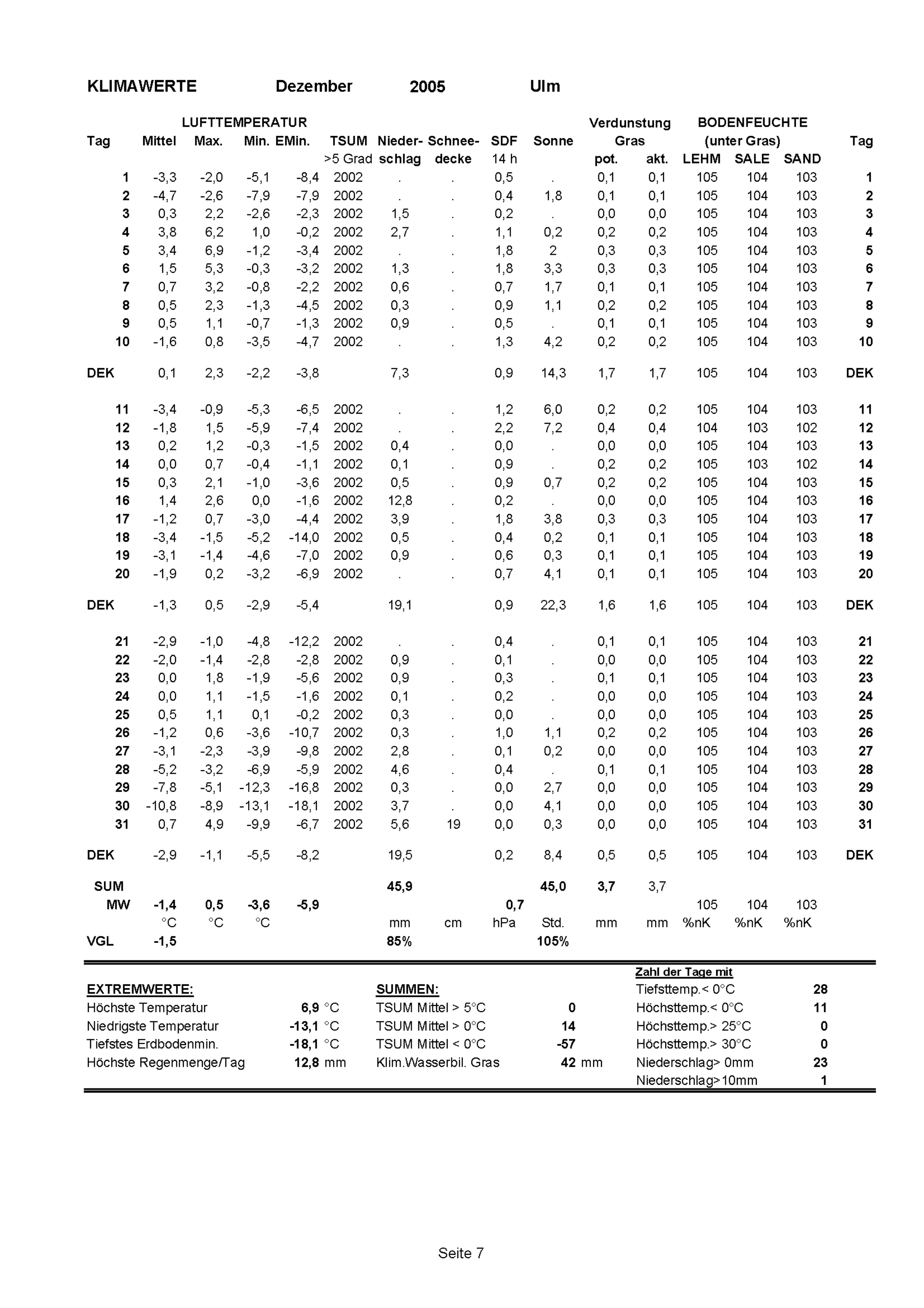 Klimawerte des Jahres 2005 (Jahresrückblick)