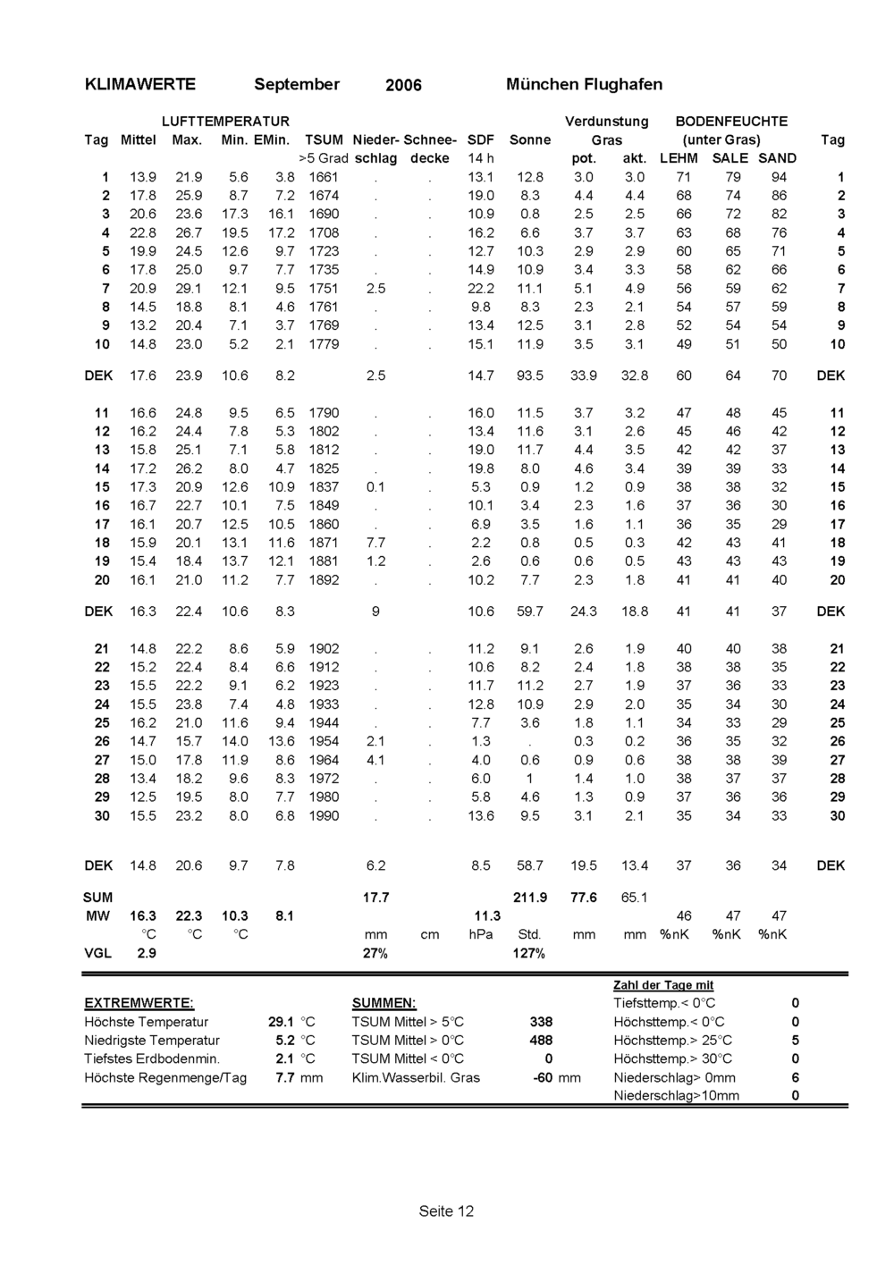 Witterungsrückblick für den Monat September