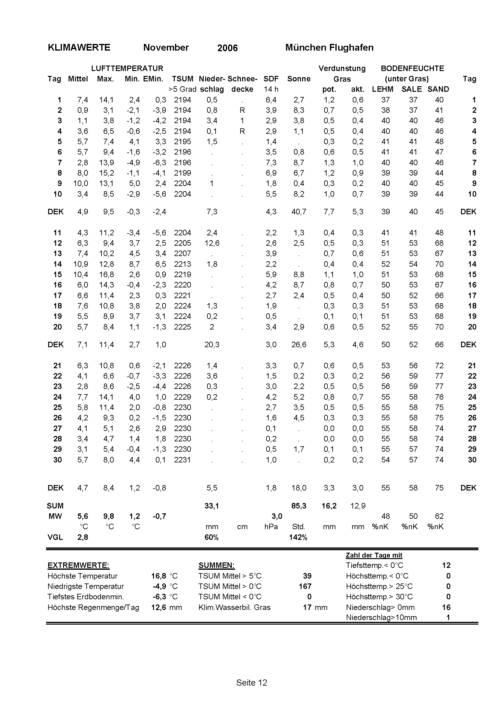 Witterungsrückblick für den Monat November