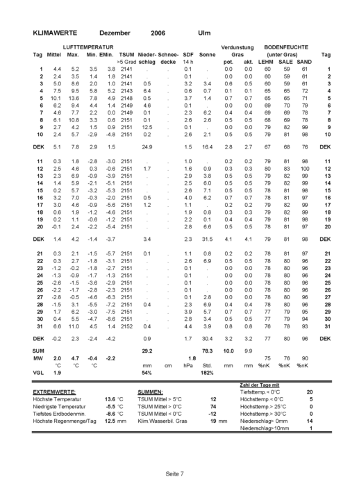 Klimawerte des Jahres 2006 (Jahresrückblick)