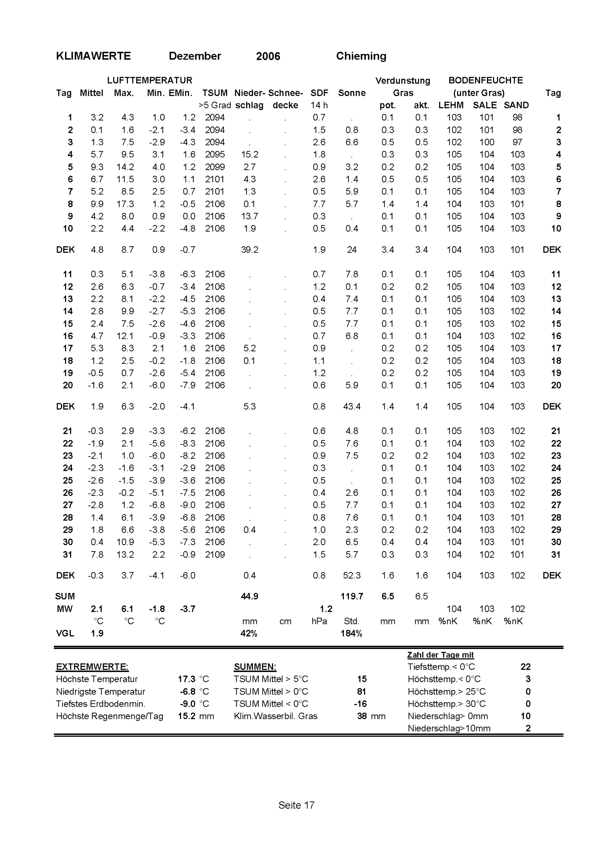 Klimawerte des Jahres 2006 (Jahresrückblick)