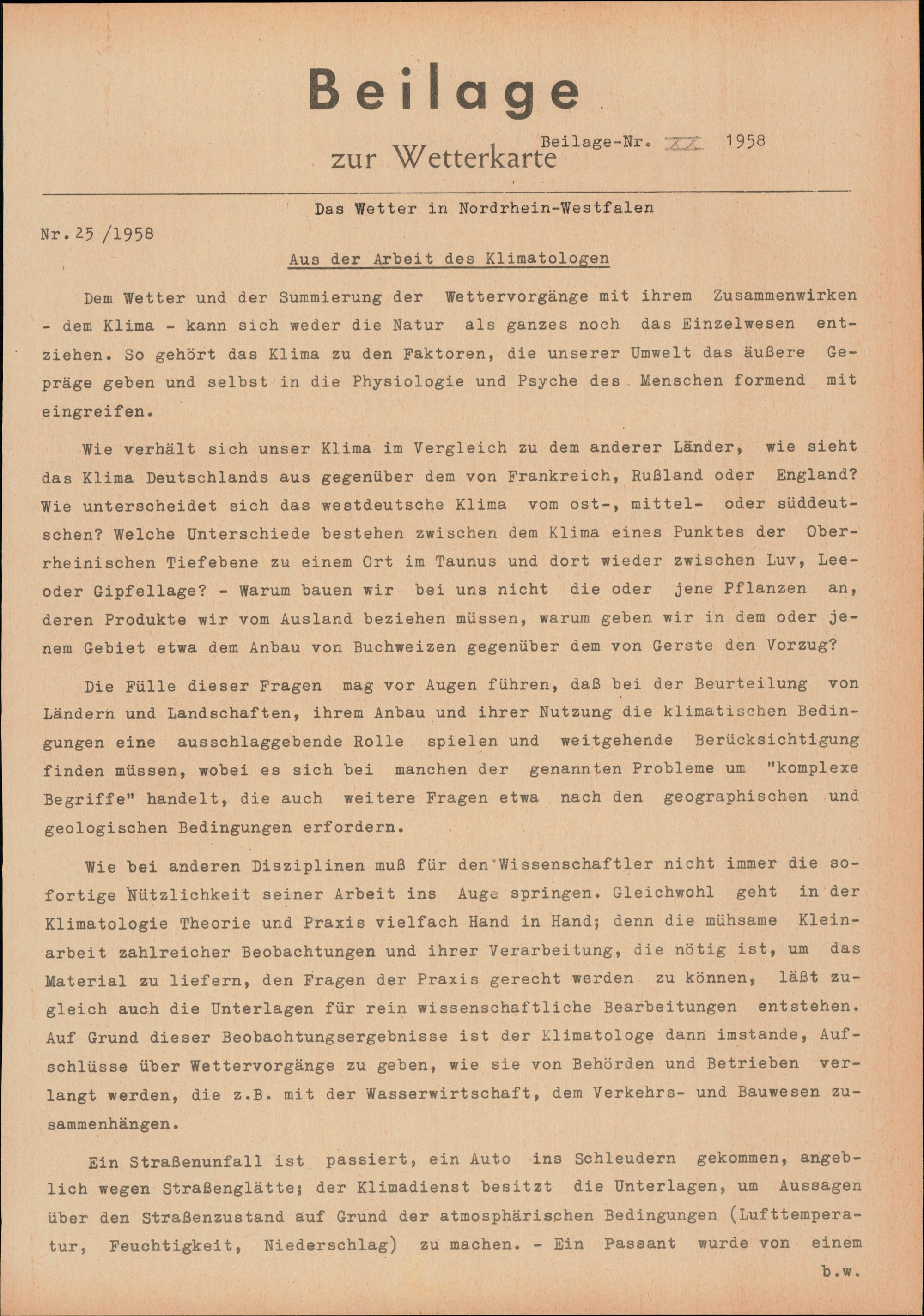 (1958) 25. Aus der Arbeit des Klimatologen