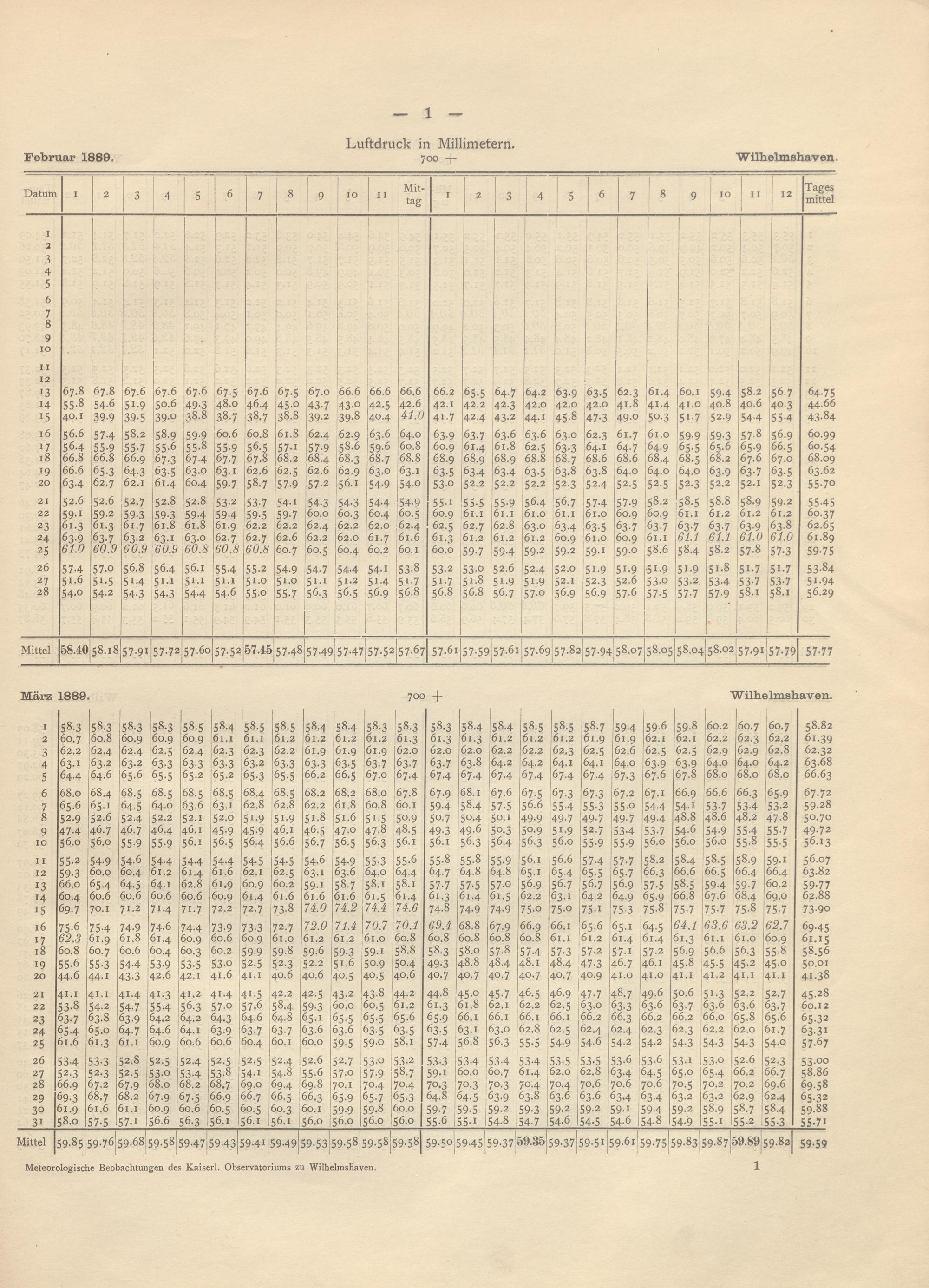 Beobachtungen der Meteorologischen Station des Observatoriums der Kaiserlichen Marine...