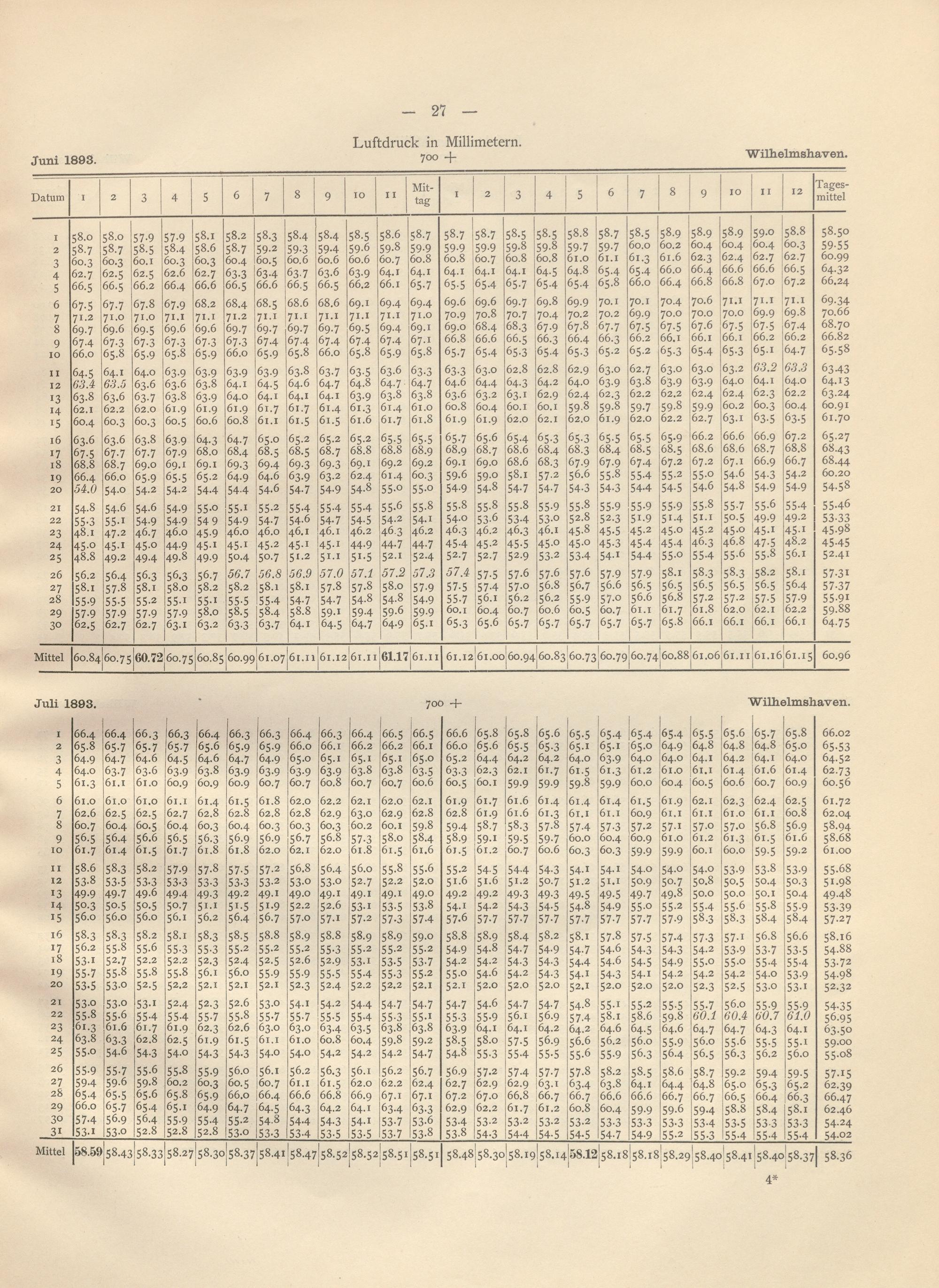 Beobachtungen der Meteorologischen Station des Observatoriums der Kaiserlichen Marine...