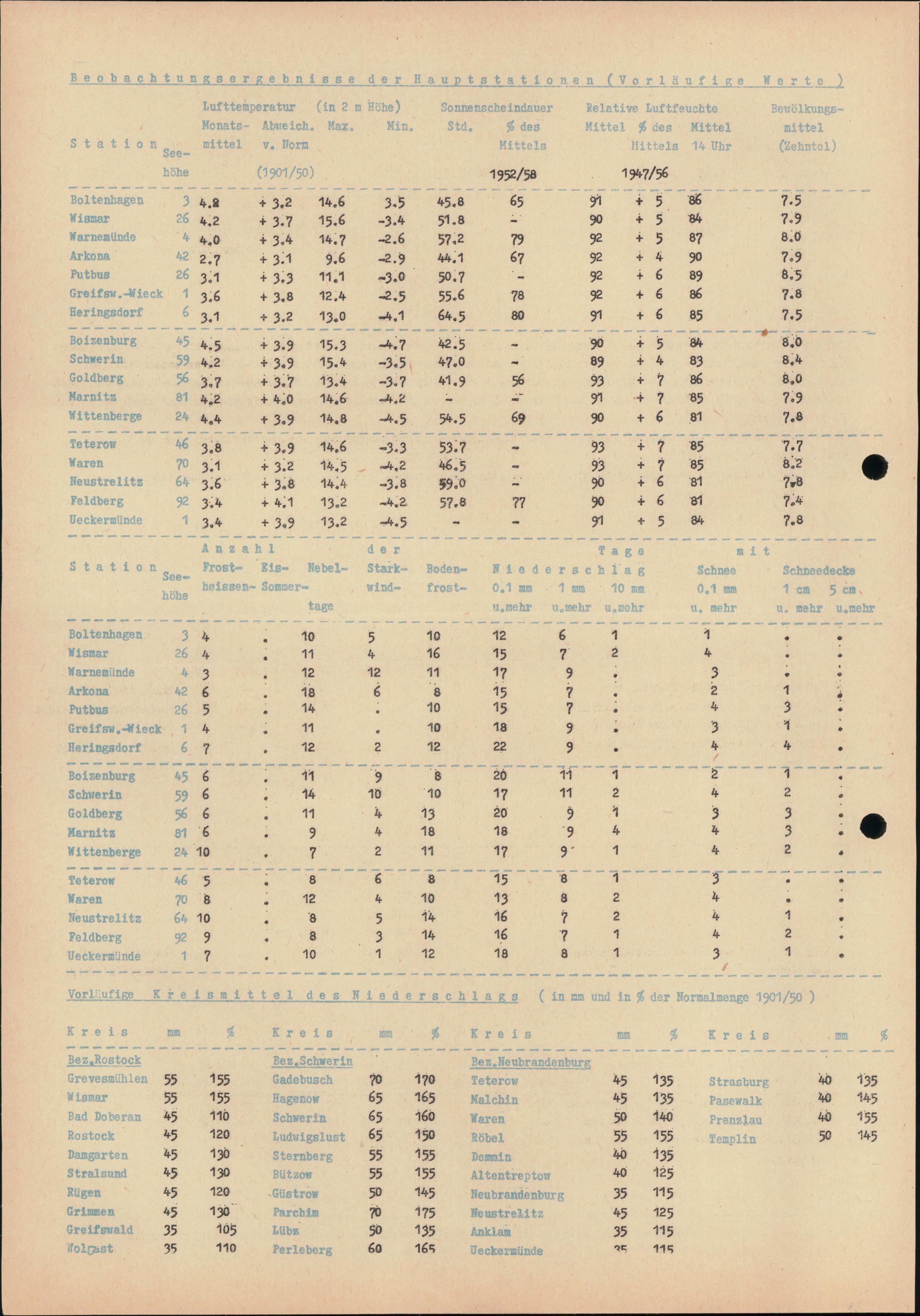 Witterungsübersicht für Mecklenburg
