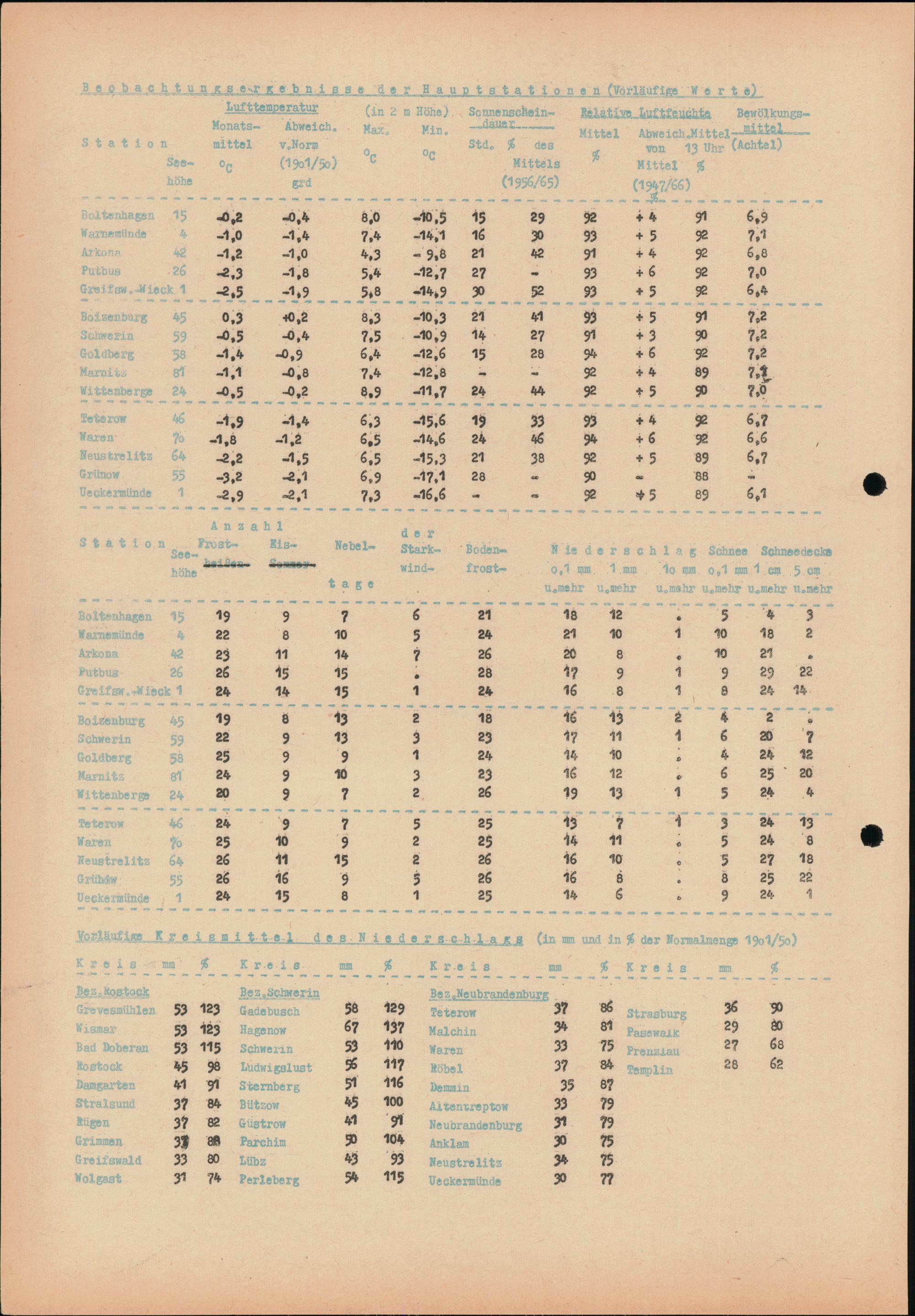 Witterungsübersicht für die Bezirke Rostock, Schwerin und Neubrandenburg