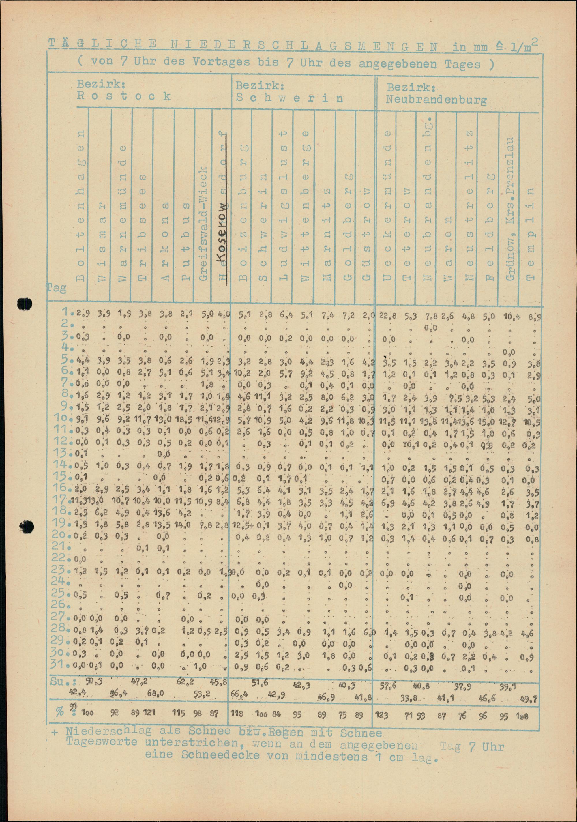 Witterungsübersicht für die Bezirke Rostock, Schwerin und Neubrandenburg
