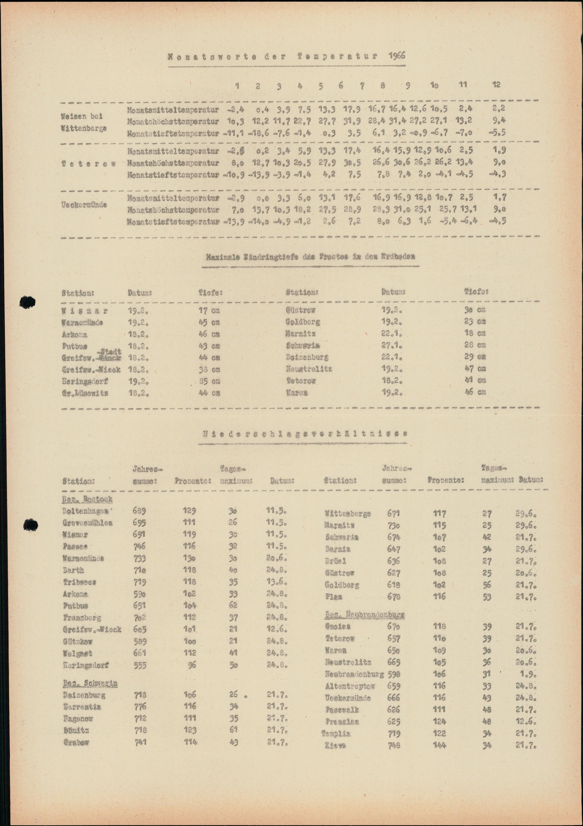 Witterungsübersicht für die Bezirke Rostock, Schwerin und Neubrandenburg