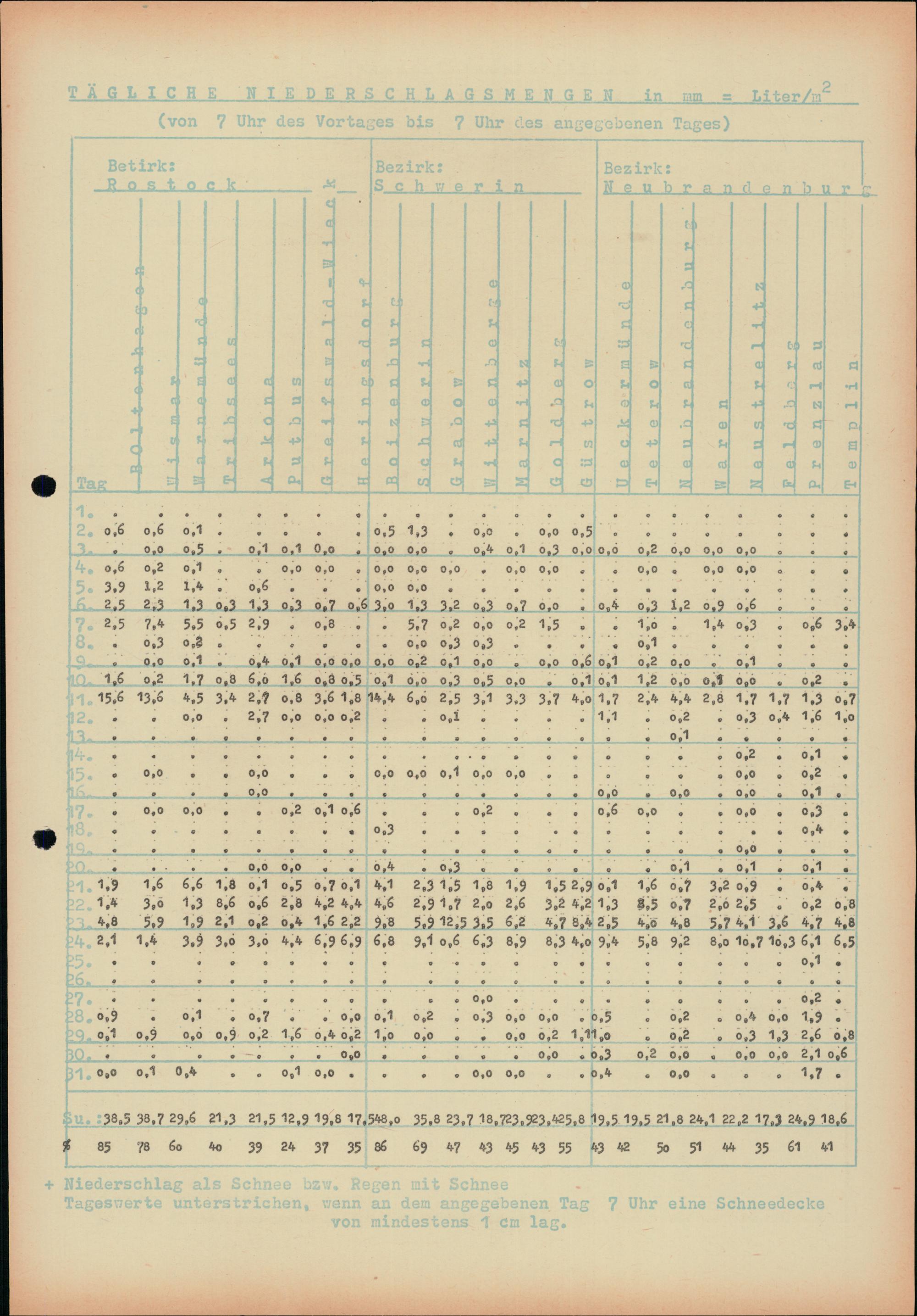 Witterungsübersicht für die Bezirke Rostock, Schwerin und Neubrandenburg