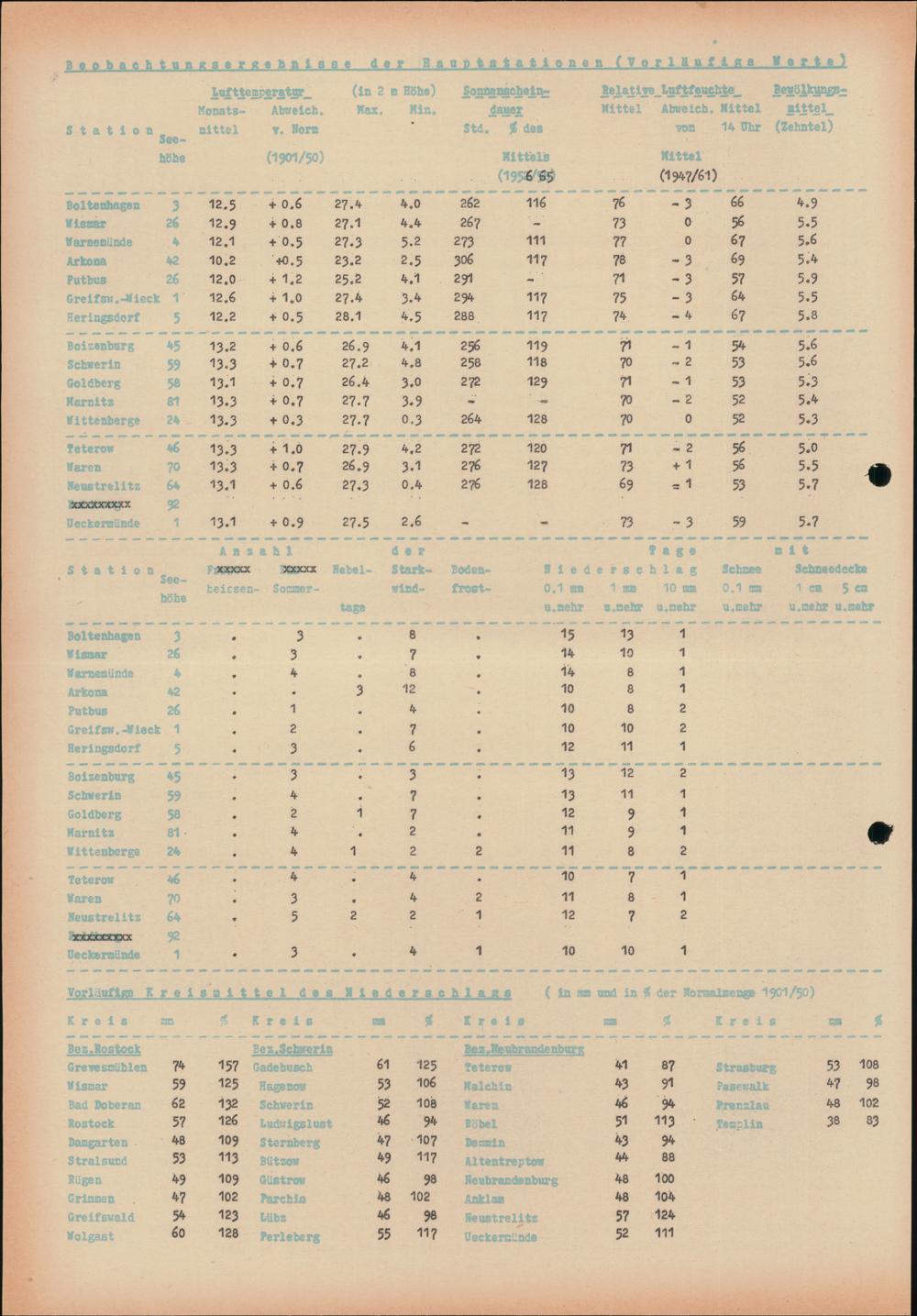 Witterungsübersicht für die Bezirke Rostock, Schwerin und Neubrandenburg