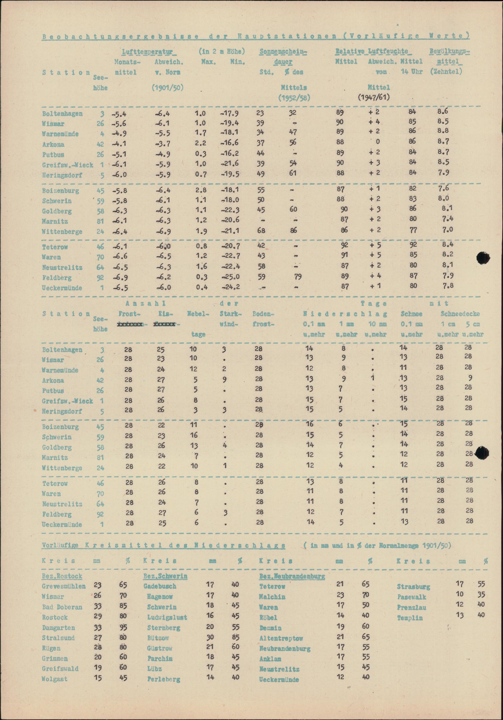 Witterungsübersicht für die Bezirke Rostock, Schwerin und Neubrandenburg