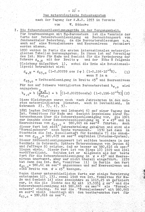 Das meteorologische Schweresystem nach der Tagung der W.M.O. 1953 in Toronto