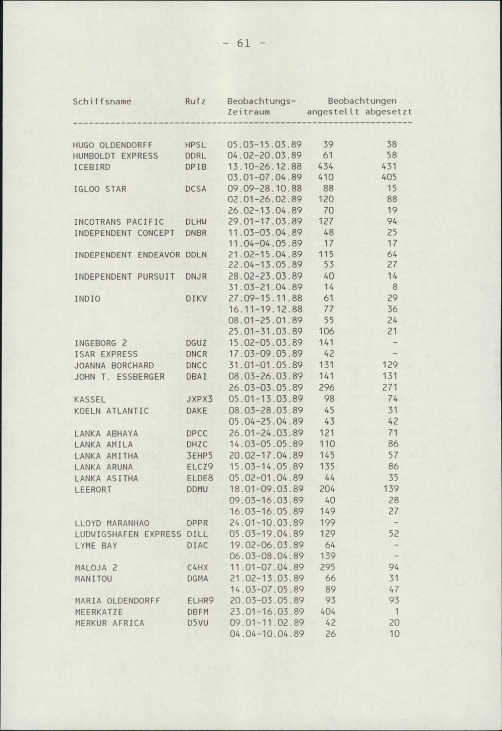Wissenschaftliche Vorhaben auf der METEOR-Reise Nr. 10 "Plankton '89-Benthos 2 89
