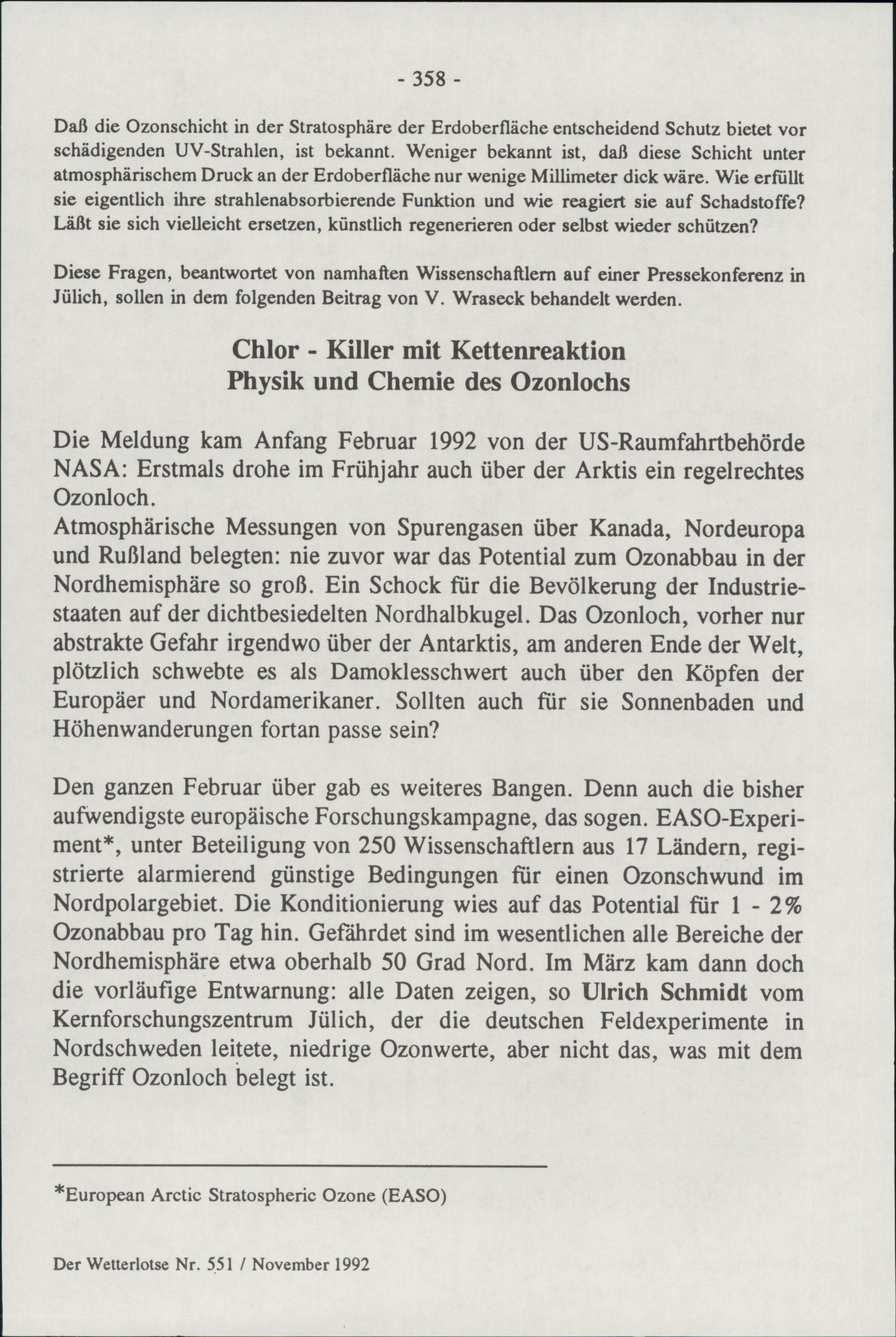 Chlor Killer mit Kettenreaktion ; Physik und Chemie des Ozonlochs