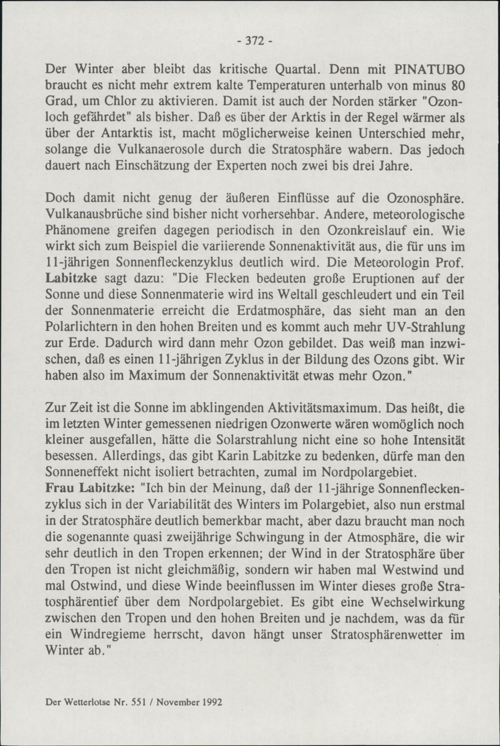 Statistik der Wetterbeobachtungen November 1992