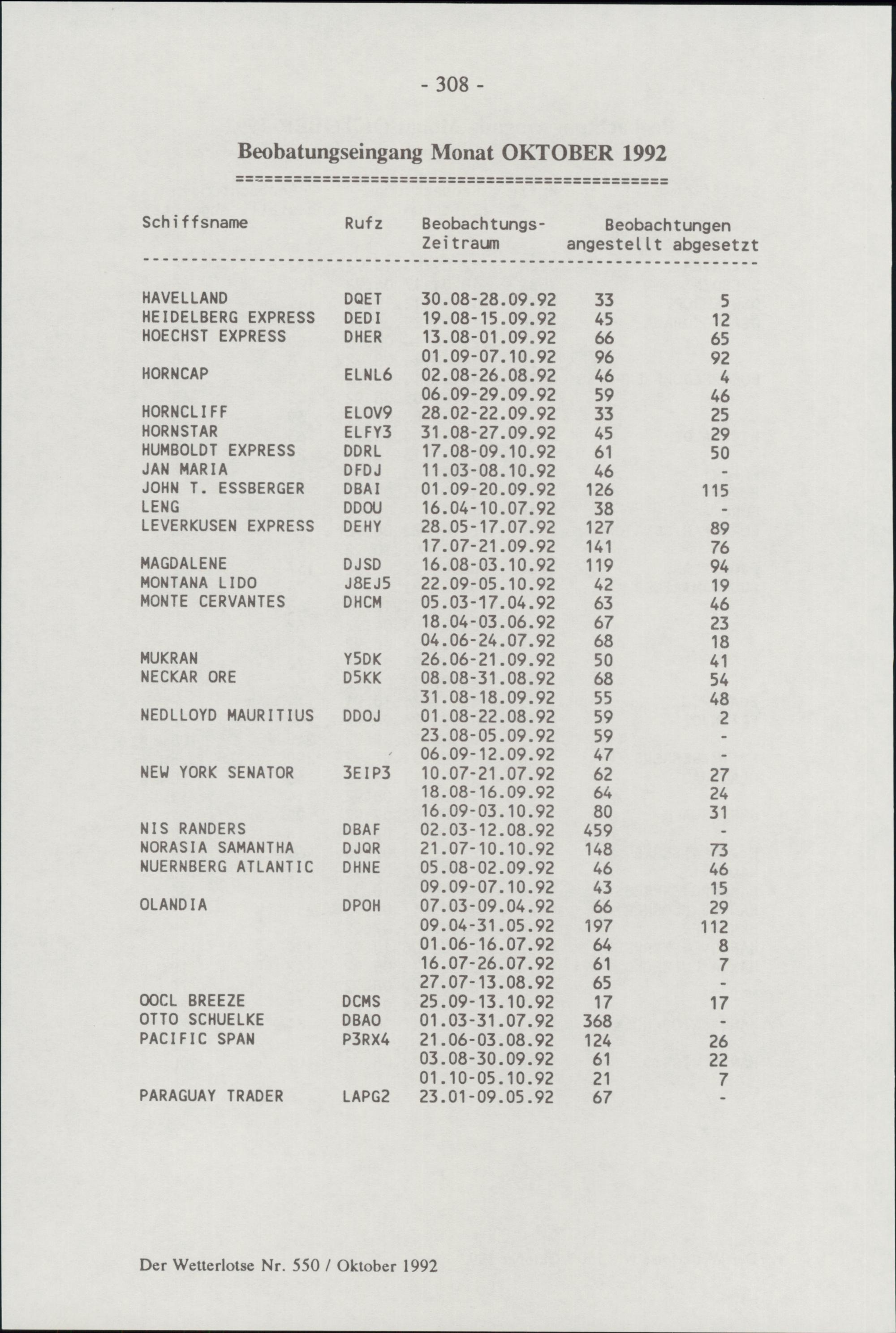 Die Witterung in den deutschen Küstengebieten im Oktober 1992