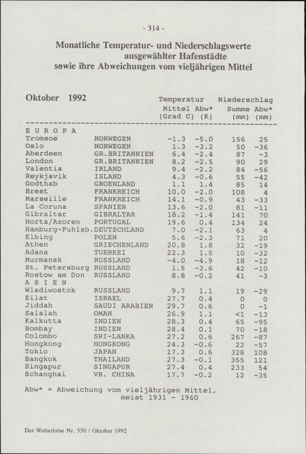 Monatliche Temperatur- und Niederschlagswerte ausgewählter Hafenstädte sowie ihre Abweichungen vom vieljährigen Mittel
