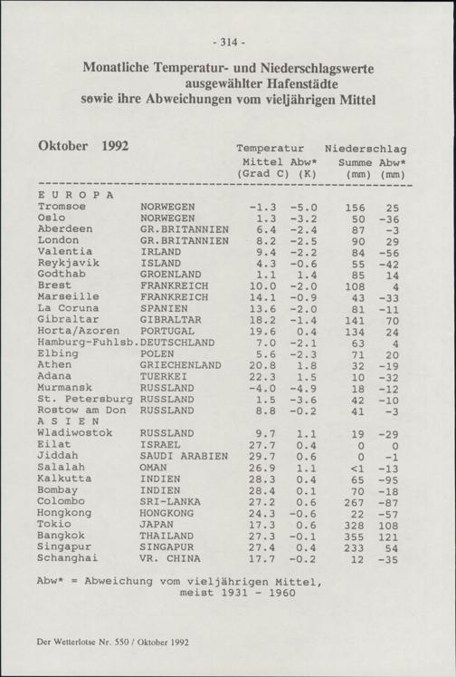 Die Witterung in den deutschen Küstengebieten im Oktober 1992