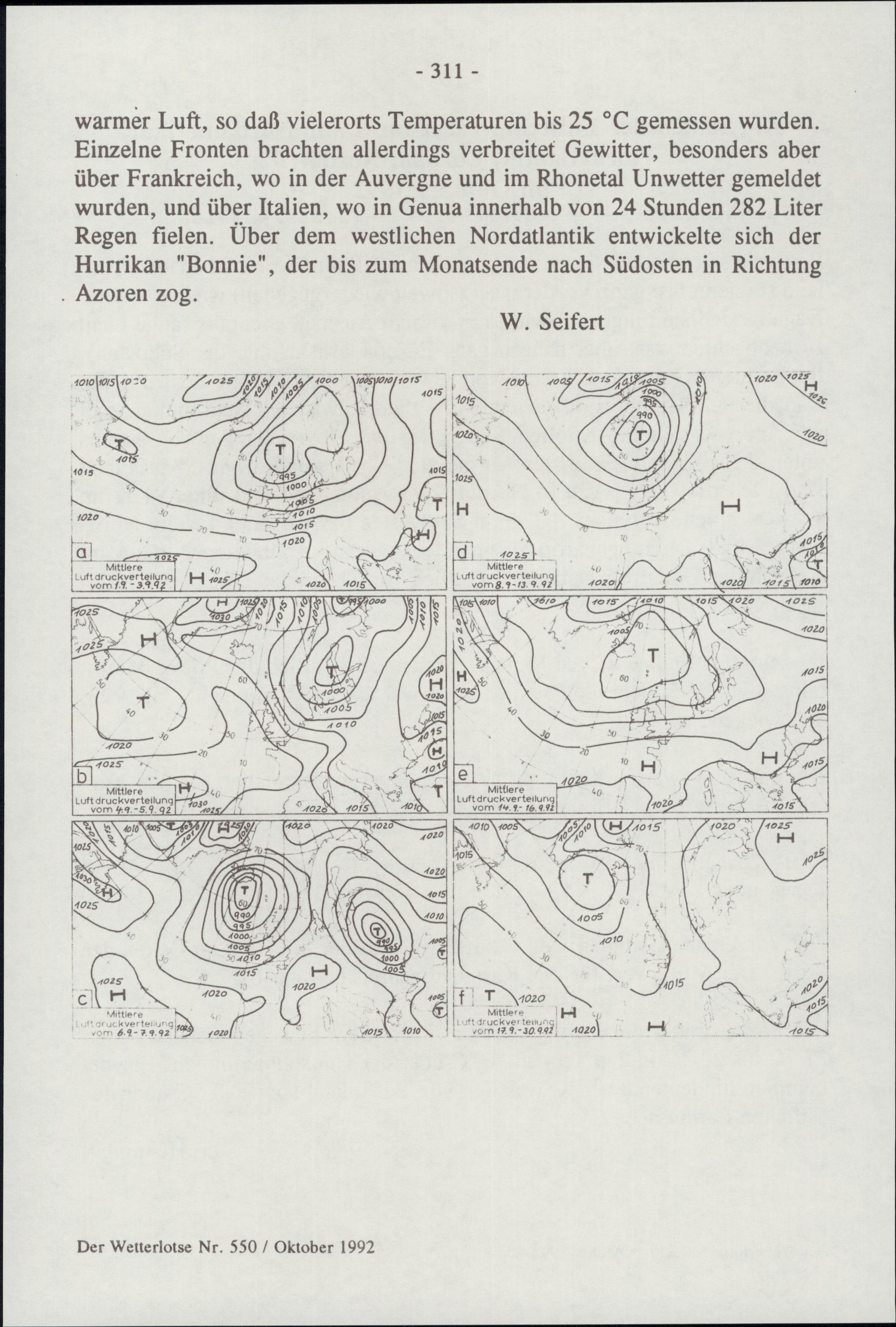 Atlantisch-europäische Witterungsabschnitte im September 1992