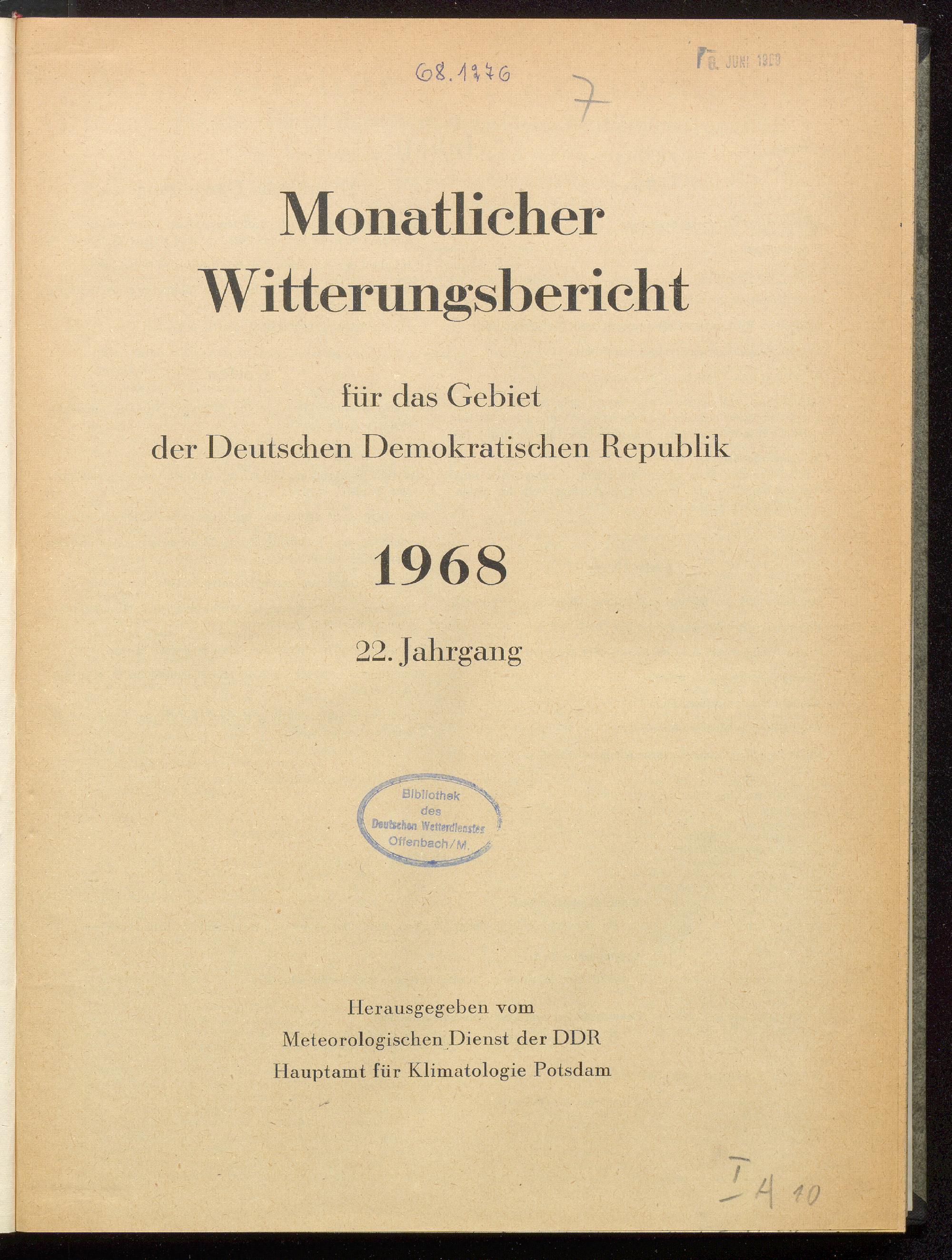 Monatlicher Witterungsbericht für das Gebiet der Deutschen Demokratischen Republ...