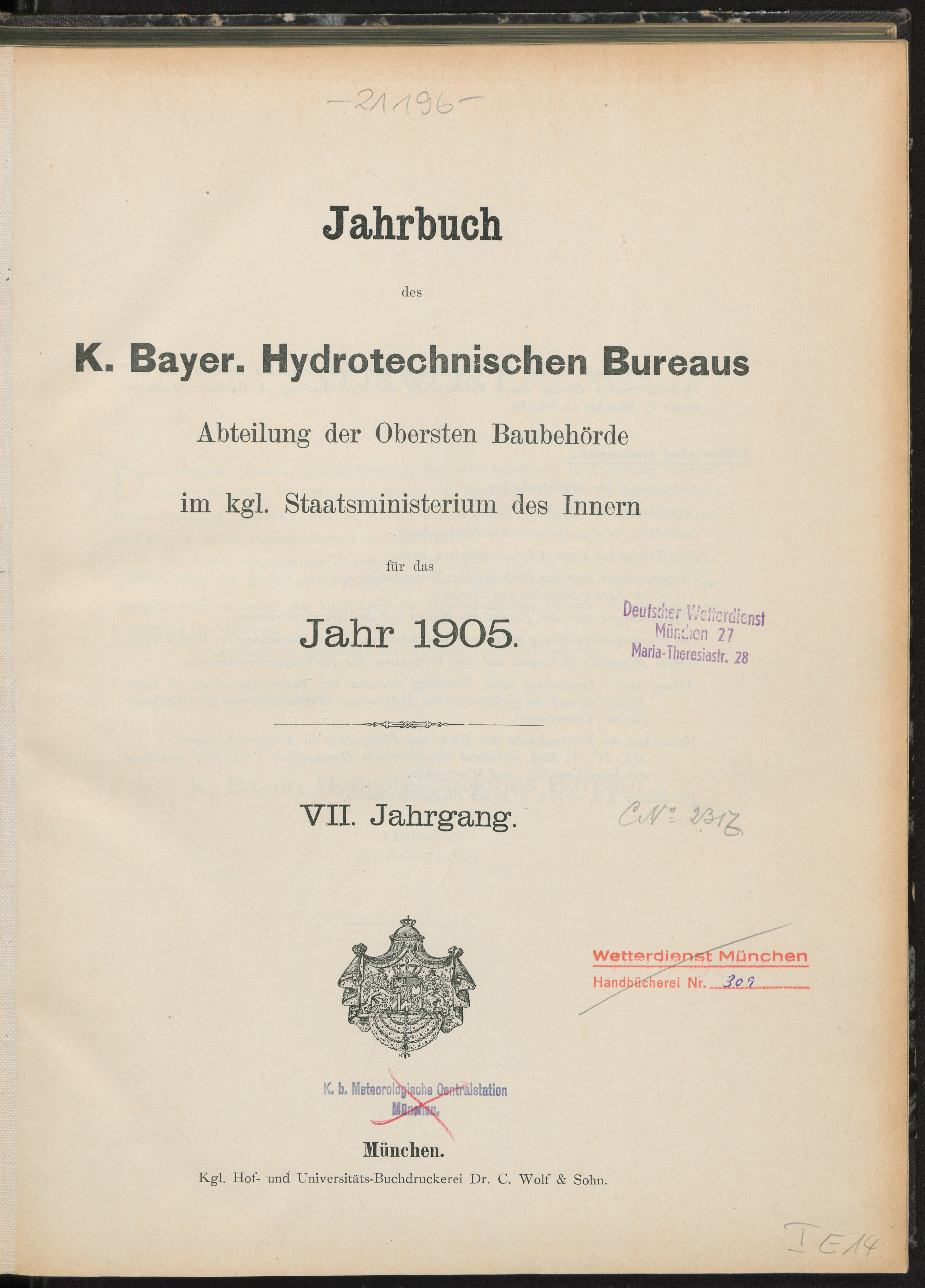 Jahrbuch des K. Bayer. Hydrotechnischen Büros, Abteilung der Obersten Baubehörde...