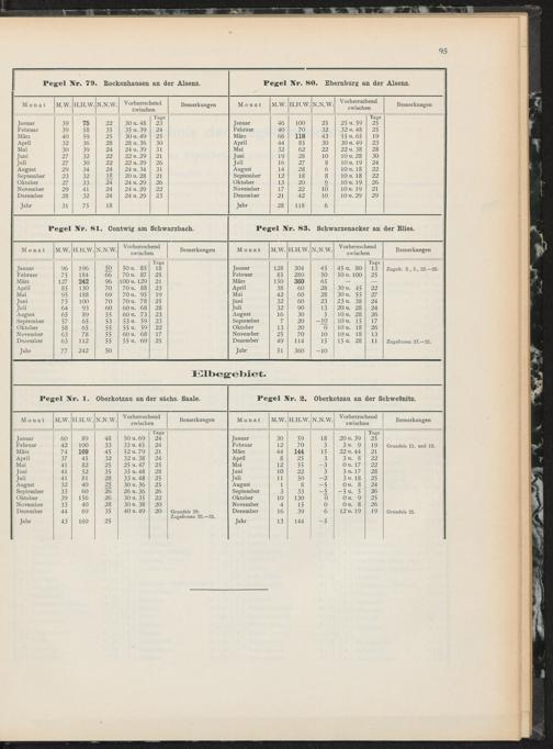 Zusammengefaßte Ergebnisse der Beobachtungen an den neueren Pegeln