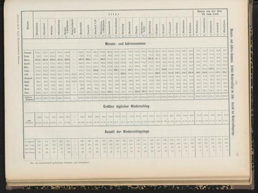 Monats-und Jahressummen, größte Tagesniederschläge, Anzahl der Niederschlagstage