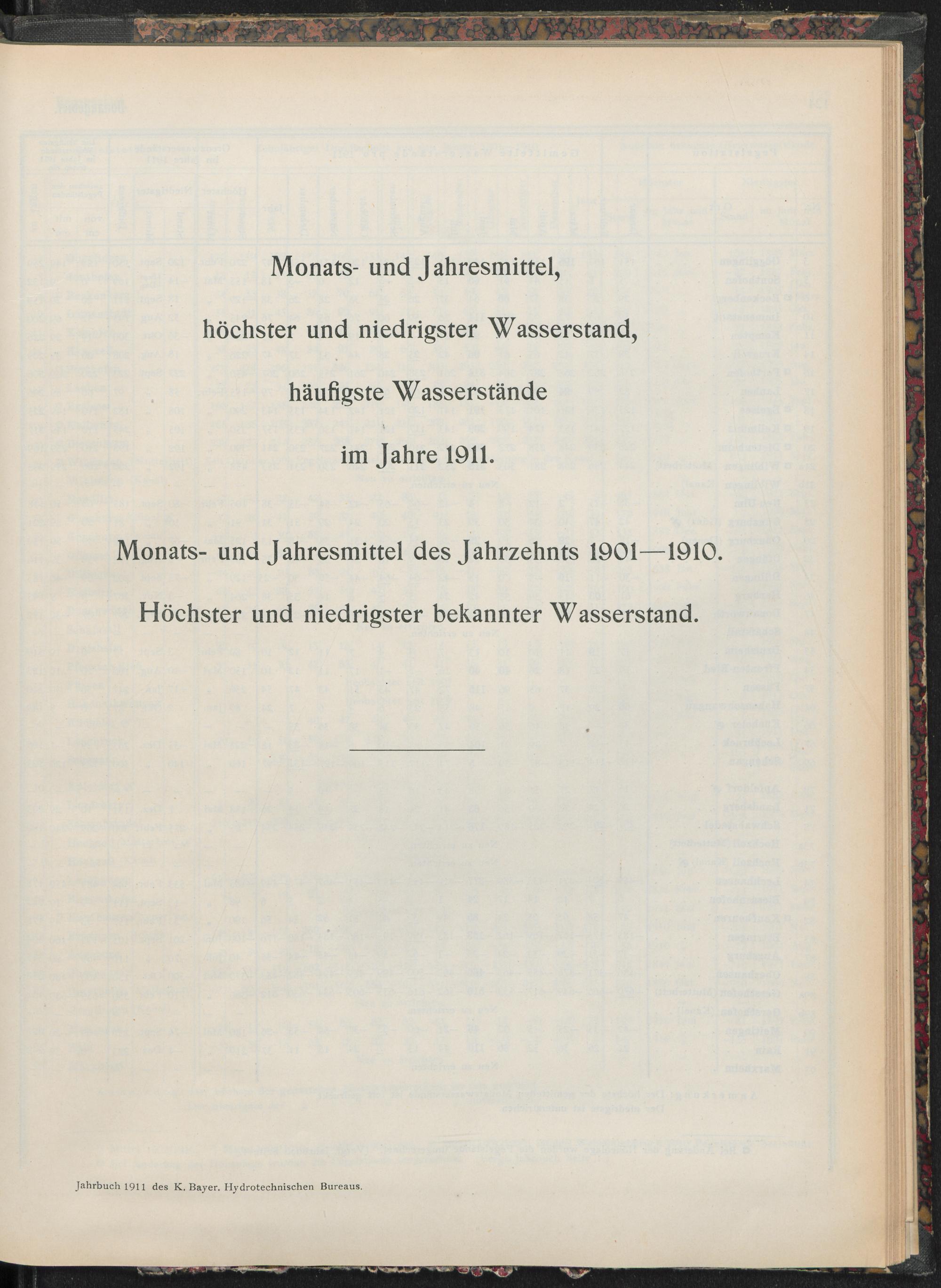 Monats-und Jahresmittel, höchster und niederster Stand, häufigste Wasserstände e...