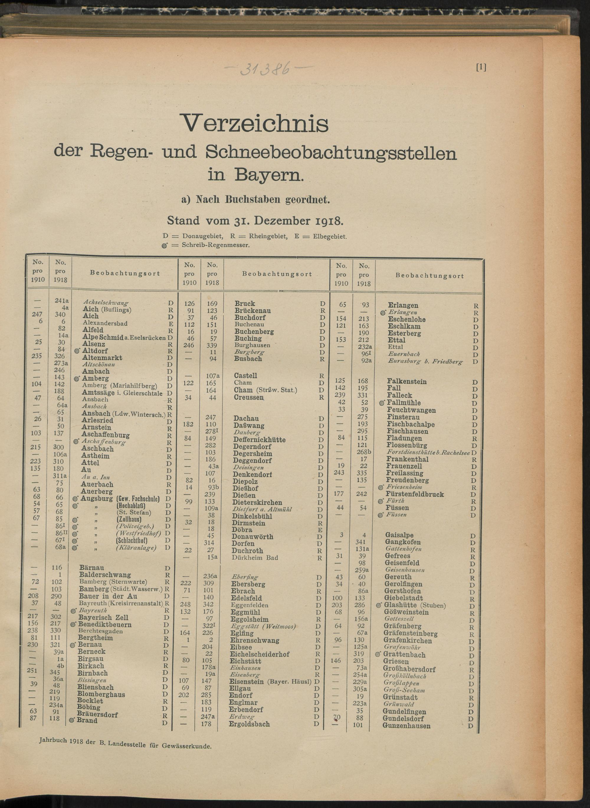 Verzeichnis der Regen- und Schneebeobachtungsstellen in Bayern