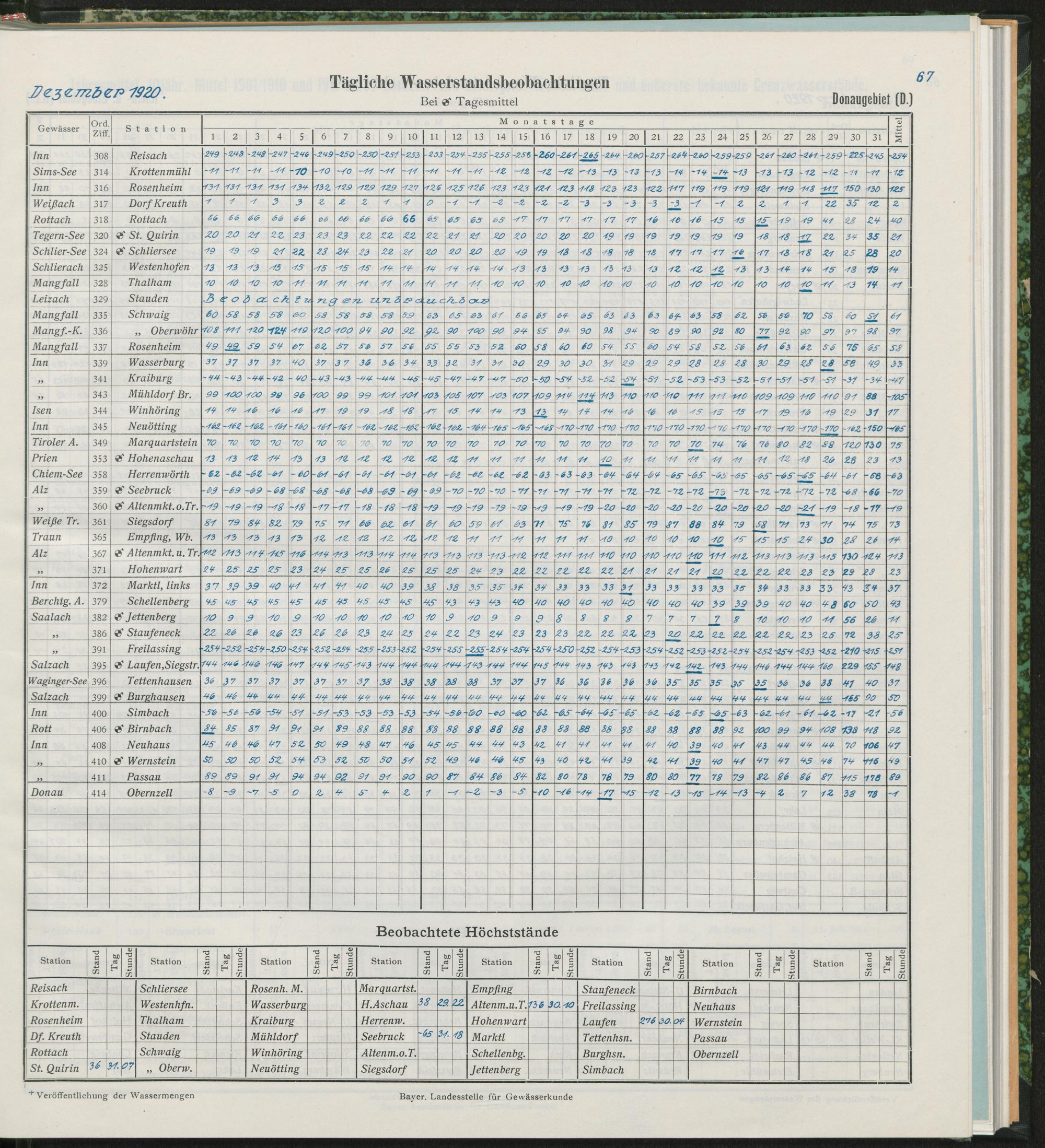 Tägliche Wasserstandsbeobachtungen