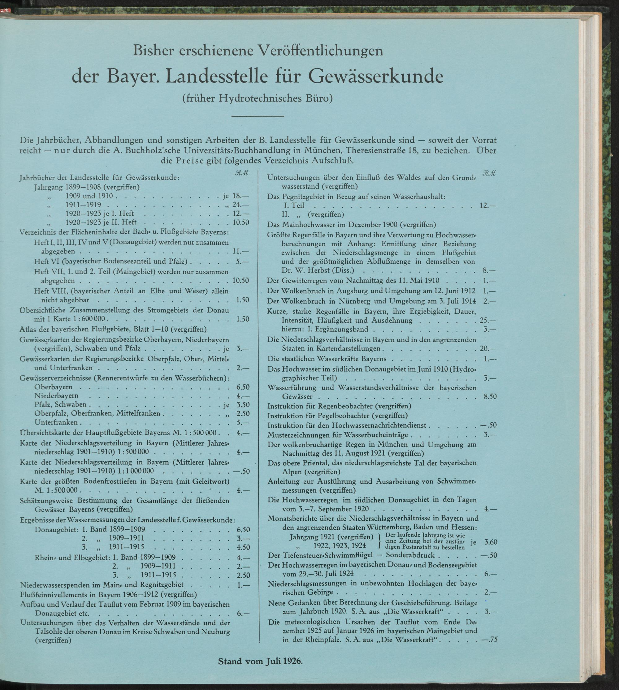 Bisher erschienene Veröffentlichungen der Landesstelle für Gewässerkunde