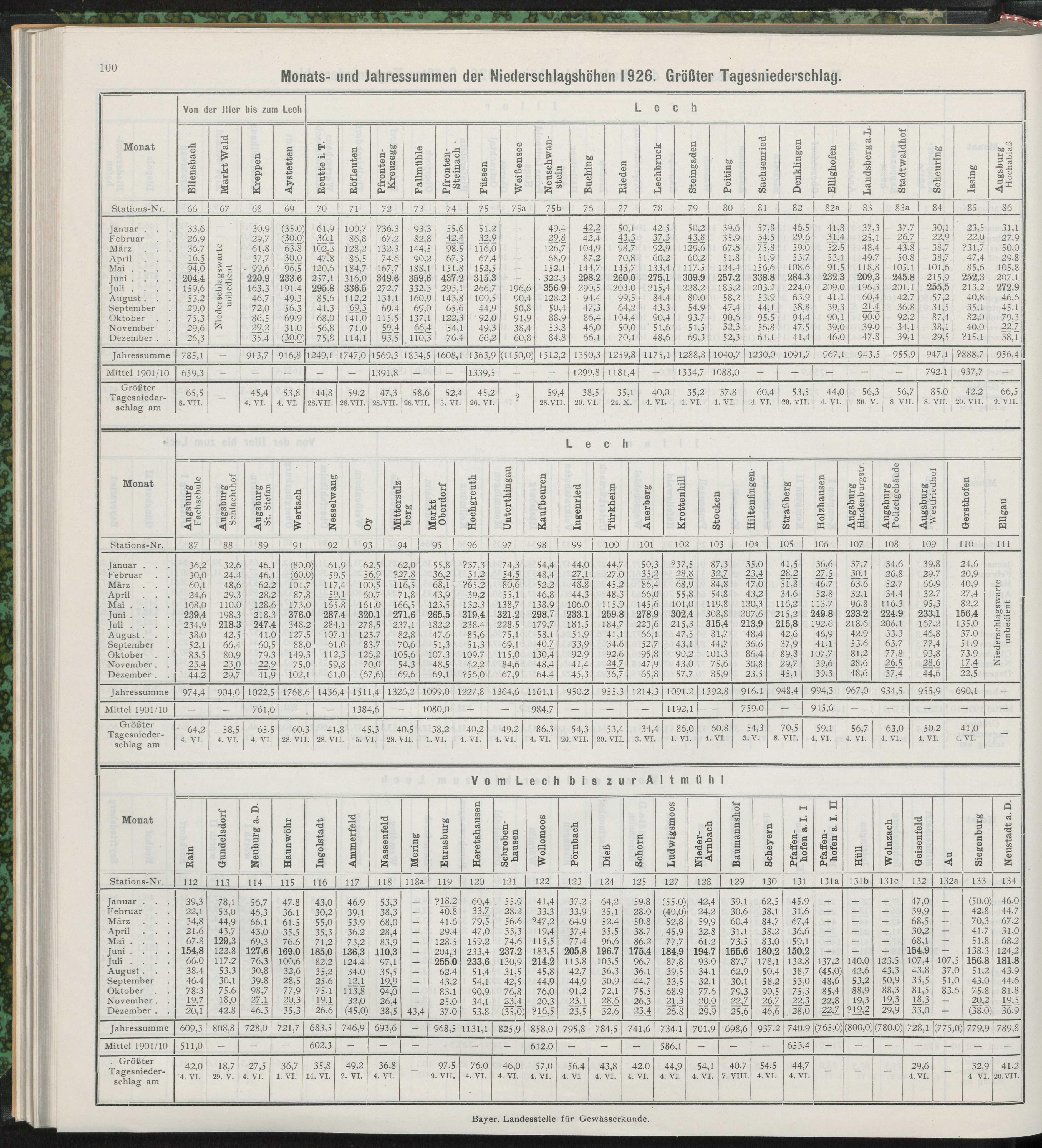 Monats- und Jahressummen der Niederschlagshöhen 1926 / Größter Tagesniederschlag...