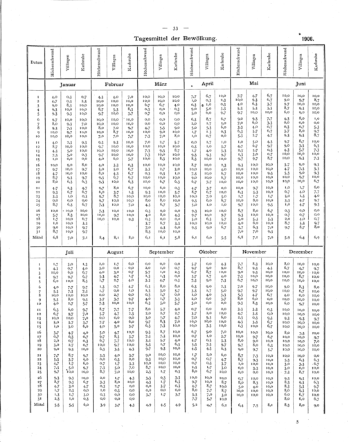 Tagesmittel der Bewölkung von Höchenschwand, Villingen und Karlsruhe