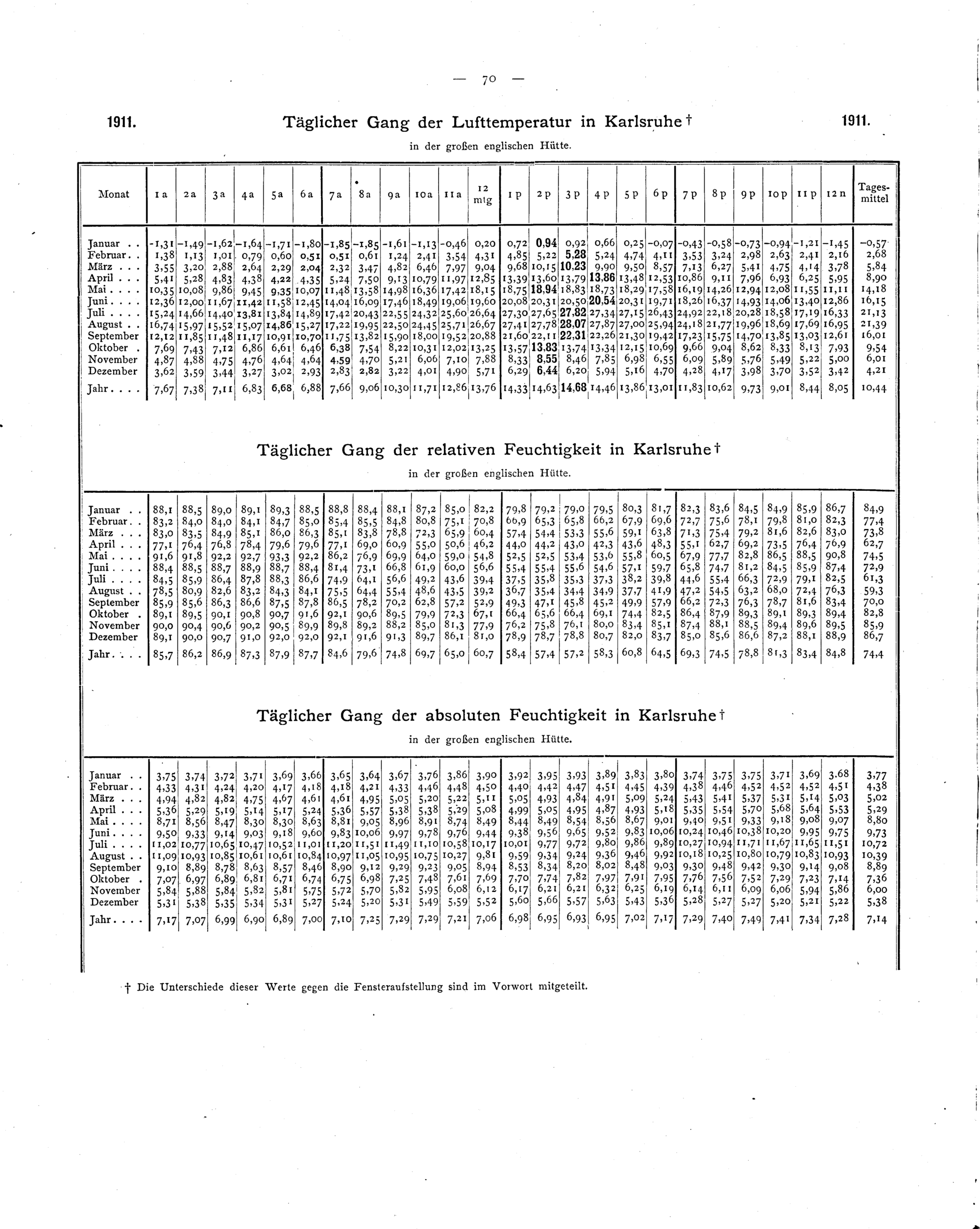 Ergebnisse der Registrierung von Lufttemperatur und Luftfeuchtigkeit in Karlsruh...